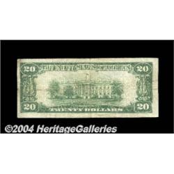 Mitchell, IN - $20 1929 Ty. 1 The First NB Ch. # 6433An excessively scarce note from the sole bank to issue in this southern Indiana hamlet. Evenly circulated Fine-Very Fine. <BR><BR><B>Important notice:</B> Heritage usually auctions material at the rate of 200-250 lots per hour. On some occasions eBay Live bid software or the Internet may not be able to keep up with the pace of the auction. We recommend placing a realistic absentee bid now as insurance to avoid disappointment. Occasionally the auctioneer may eliminate or reject an eBay Live bid, and the auctioneer may also reopen a lot after the close of the eBay live bidding (usually because we missed an audience bid), and may reject your bid even if it shows you as the winning bidder. By bidding via eBay Live, you agree that Heritage may award the lot to another bidder at its sole discretion under the circumstances described above or any other reasonable circumstances. Since eBay bids are not shown to us until we open the lot on the floor, we treat those bids just like floor bids. In most cases the floor responds before the eBay bid is presented to us, due to Internet lag time, so for consistency we have made it a policy that floor bids are always considered first over tie eBay live bids. Also please note that all Heritage lots purchased through eBay Live carry a 20% Buyer's Premium. Please make sure you read the Terms and Conditions before you bid. <BR><BR><B>IMPORTANT ANNOUNCEMENT ABOUT RESERVES:</B> Heritage now divulges all reserves on its web site 7 days before every auction. If you want to know whether the reserve on this lot has been met, and if not, what the reserve amount is, please visit this lot page on the HeritageCoin.com web site, or email: bid@HeritageGalleries.com