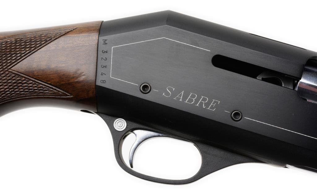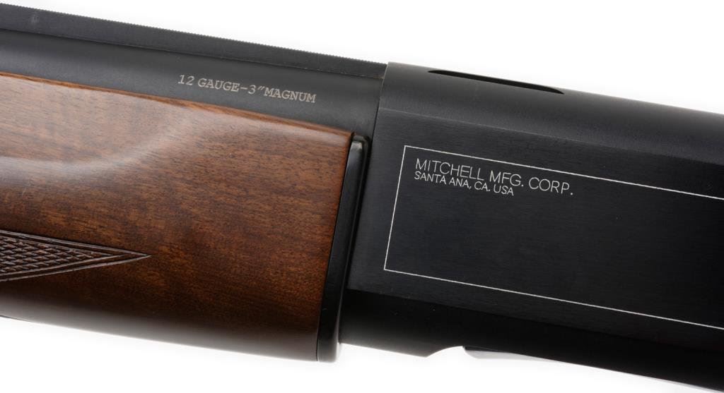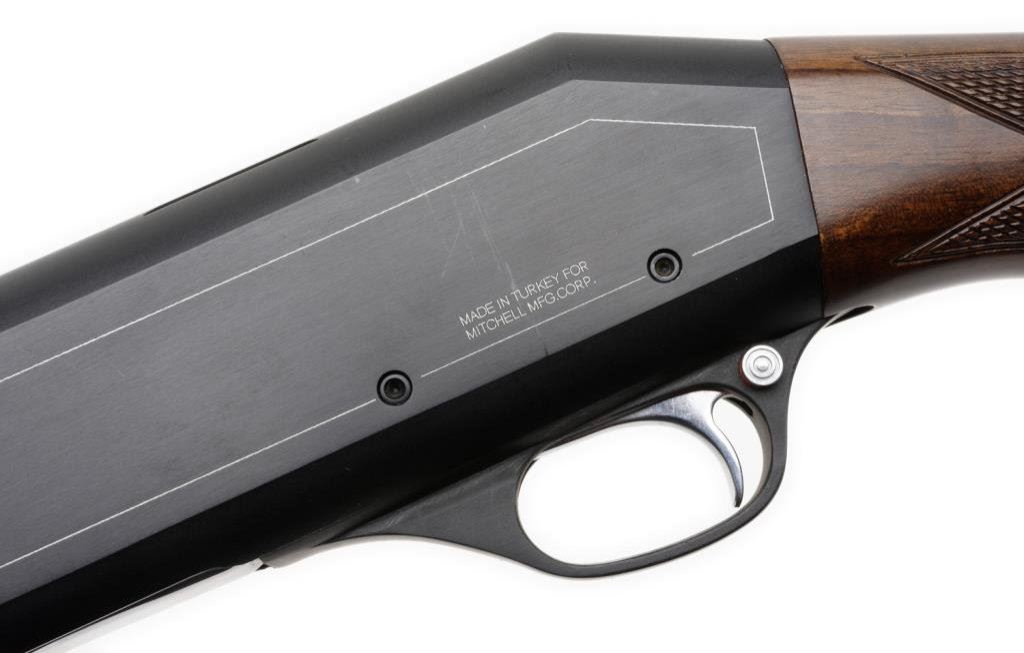*Mitchell Manufacturing Corp. Sabre Model semi-automatic shotgun, Turkish-made, 12 gauge, 3” Magnum, 28” ventilated rib barrel with red glow front sight, S/N M 32348, black finish, checkered wood stocks in overall like new condition. Est.: $250-$500.
