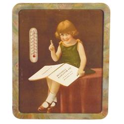 Mitchell Radiator Co.-Mitchell, SD adv. thermometer in original metal frame, VG condition, 8.5"W x 10.5"H.