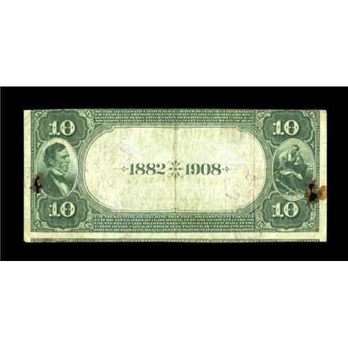 <B>Mitchell, SD</B></I> - $10 1882 Date Back Fr. 545 <B>The First NB</B></I> Ch. # (W)2645<BR>The first time this note participated in an auction was a John Hickman affair that took place in October 1991. This is one of only seven 1882 Date Backs listed in the census. The cut is a bit off, so that a portion of the note below shows and the top margin is trimmed in. There are also two small rust holes near the left and right edges respectively. <B>Fine-Very Fine.</B></I><BR><BR><b>Shipping:</b> Coins & Currency (<a target="_blank" href="http://www.heritageauctions.com/common/shipping.php">view shipping information</a>)