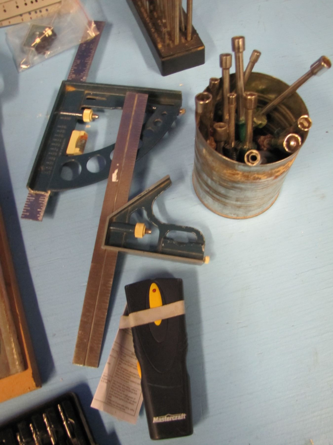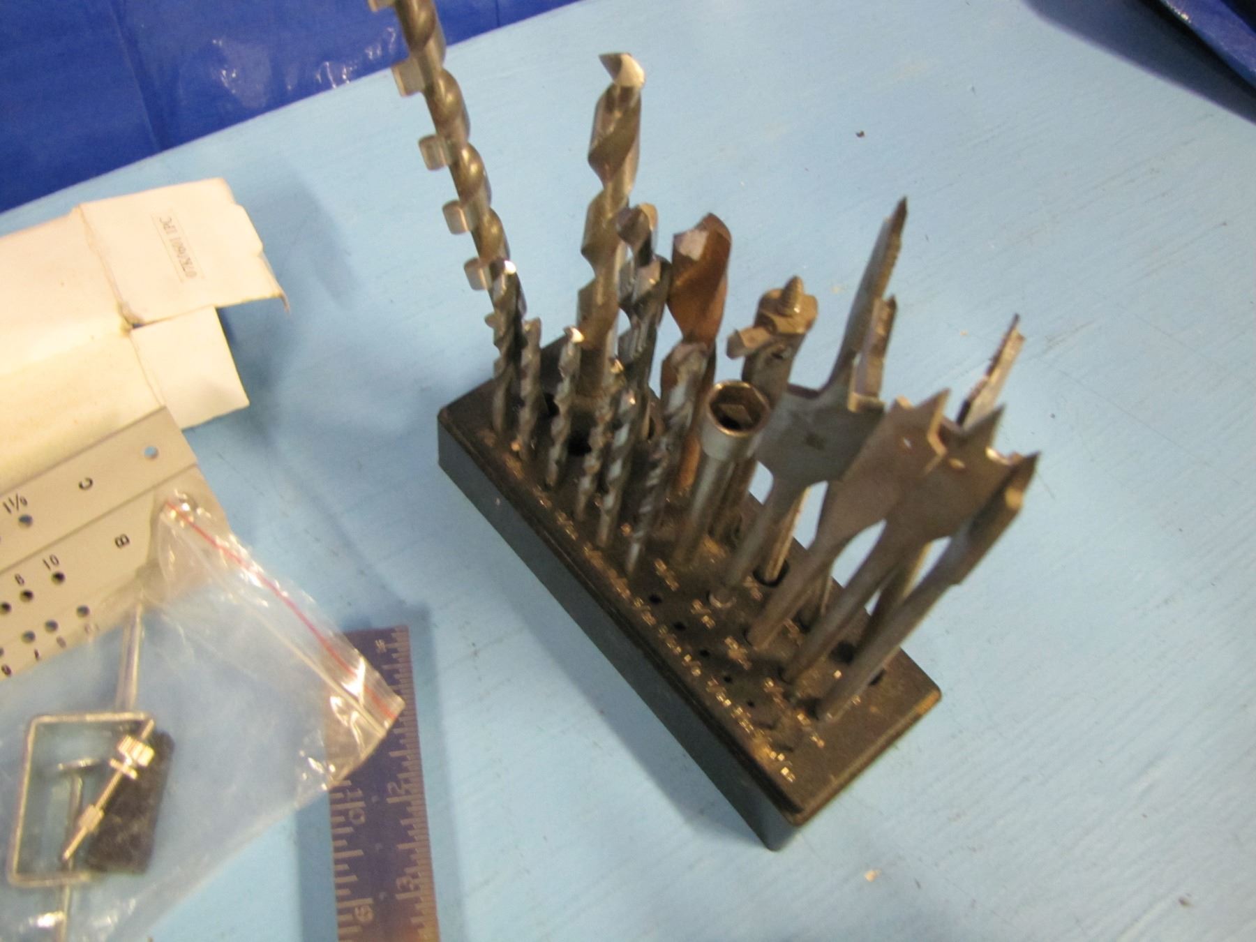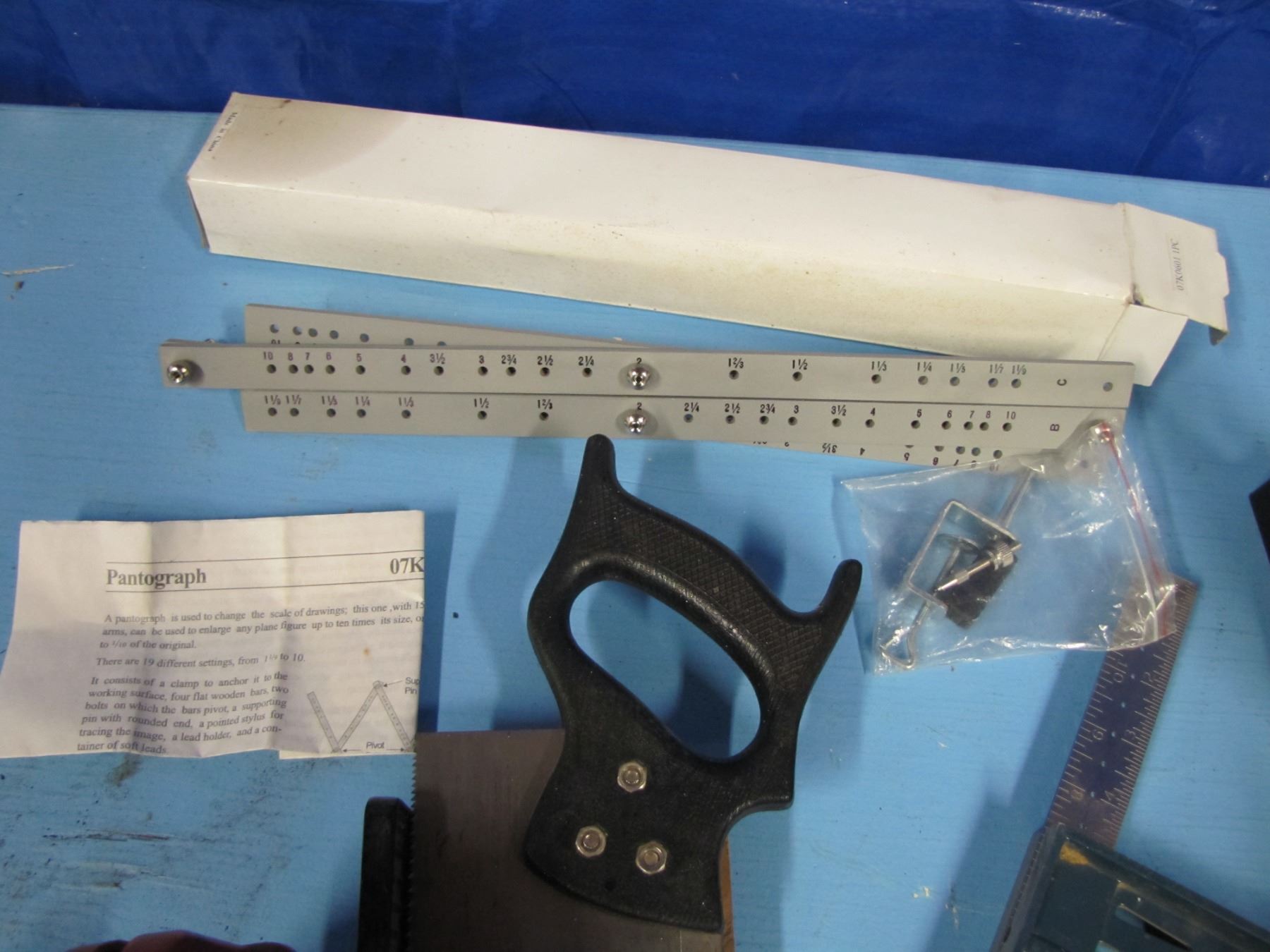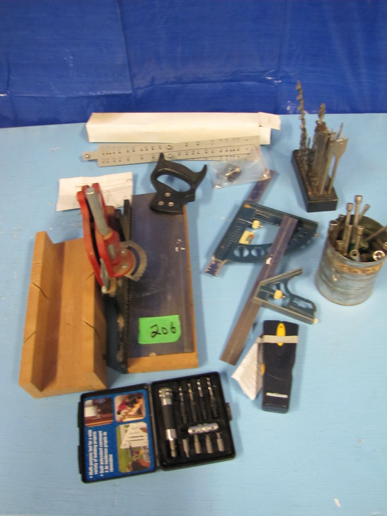 Mitre boxes, squares, spade bits etc