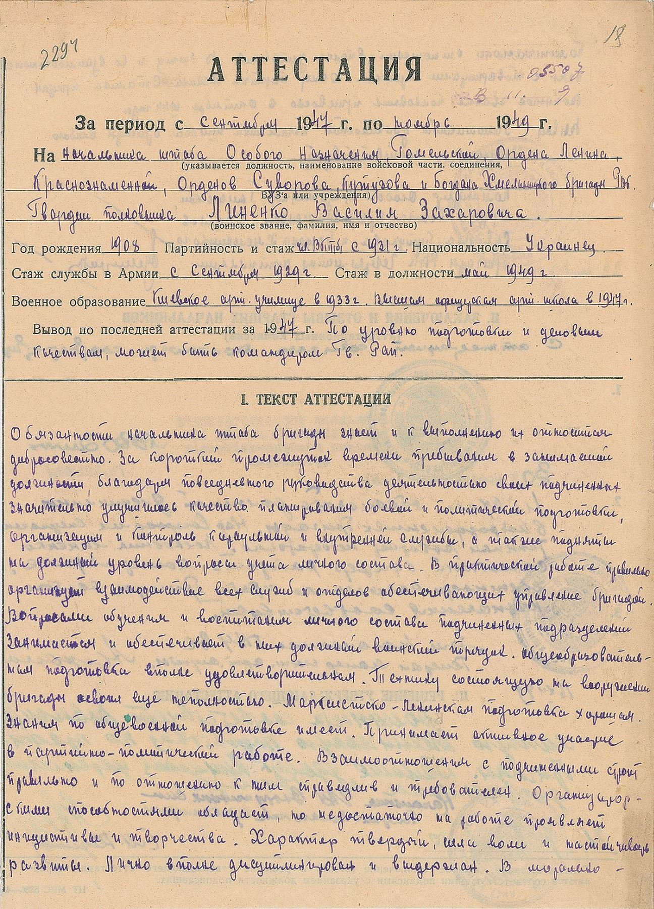 Soviet military commander (1902–1960) who served as Chief Marshal of the Artillery in the Soviet Armed Forces. He was killed in an explosion at Baikonur Cosmodrome during the eponymous Nedelin catastrophe, when a prototype of the Soviet ICBM R-16 exploded while being prepared for a test. Untranslated manuscript DS in Cyrillic, one page both sides, 8 x 11.25, 1950. Untranslated official document signed at the conclusion in green ink by Nedelin, and countersigned by several others. In fine condition. Nedelin inadvertently played a key role in ushering in the Space Age by concluding that rockets were the ideal means to deliver a nuclear warhead to the United States instead of bombers, and ordered Sergei Korolev to develop the massive R-7 ICBM capable of carrying a large warhead to the United States. This rocket and its derivatives, while never an effective ICBM, was powerful enough to launch Sputnik.