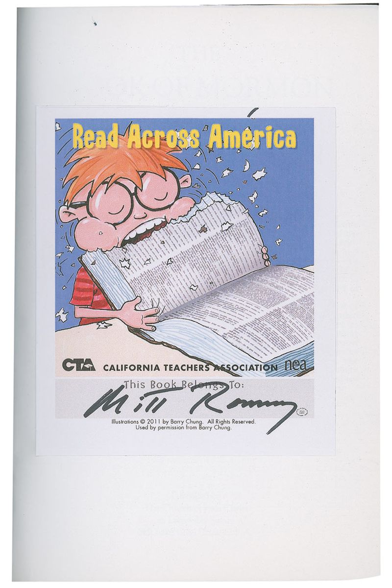 Signed book: The Book of Mormon: Another Testament of Jesus Christ. Later printing. Salt Lake City, Utah: The Church of Jesus Christ of Latter-day Saints, 1981. Softcover, 5 x 7, 779 pages. Signed on a bookplate affixed to the first free-end page in black felt tip. In fine condition.