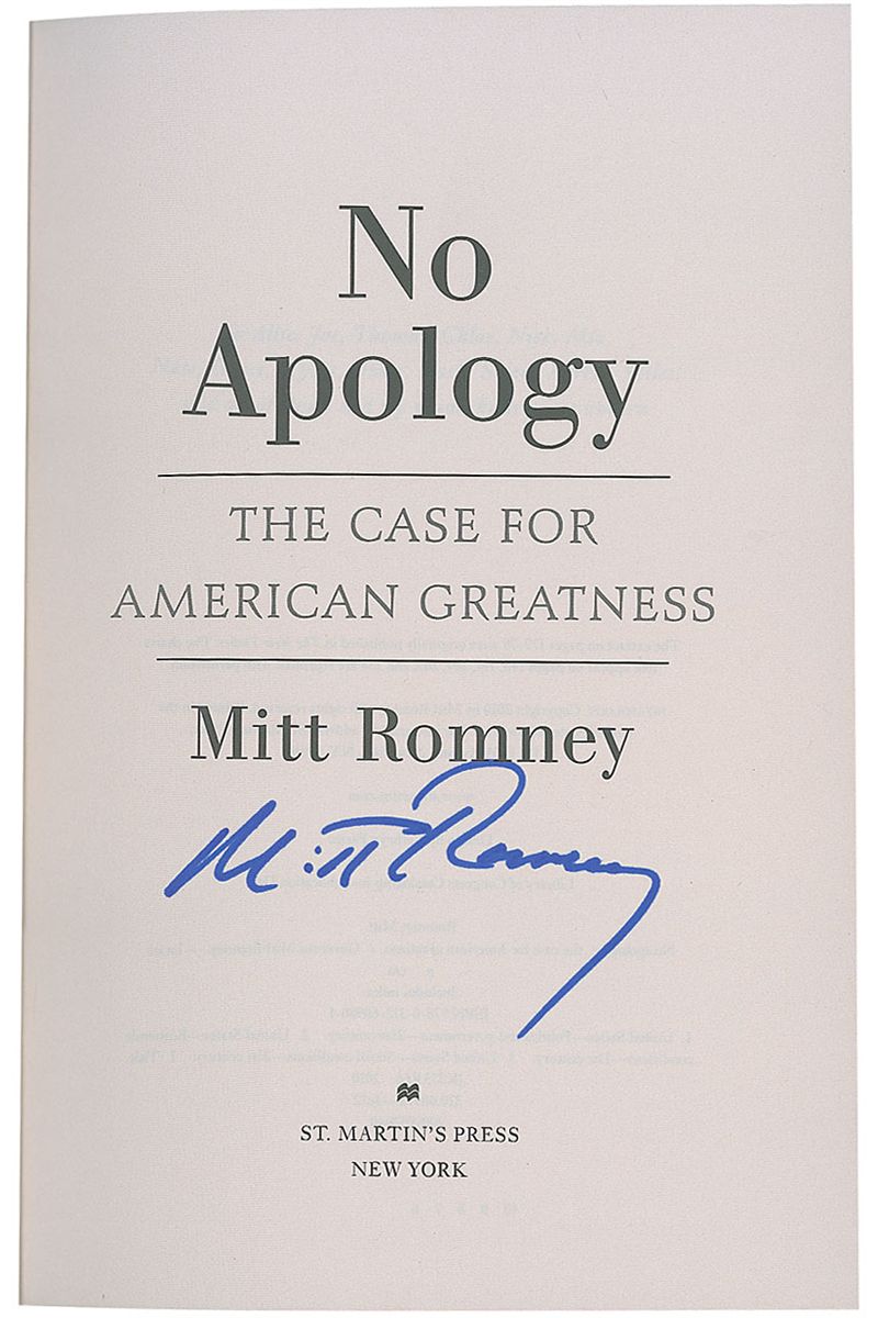 Signed book: No Apology. First edition, later printing. NY: St. Martin's Press, 2010. Hardcover with dust jacket, 6.5 x 9.5, 323 pages. Signed on the title page in blue felt tip. In fine condition.