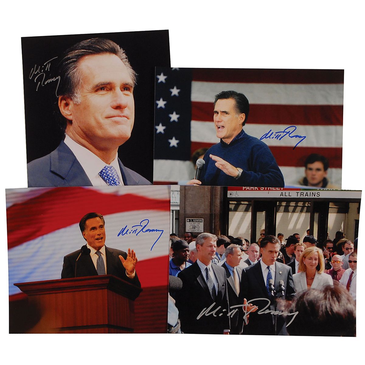 Four color photos, glossy and satin-finish, three 10 x 8 and one 8 x 10, each signed in either blue felt tip or silver ink. In fine condition.