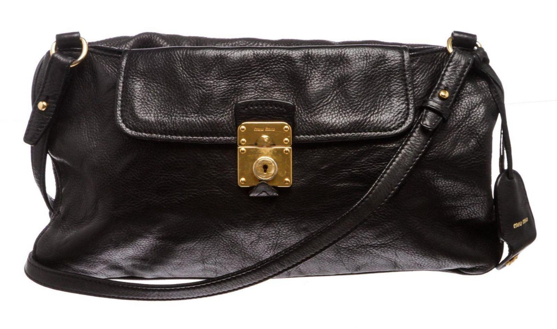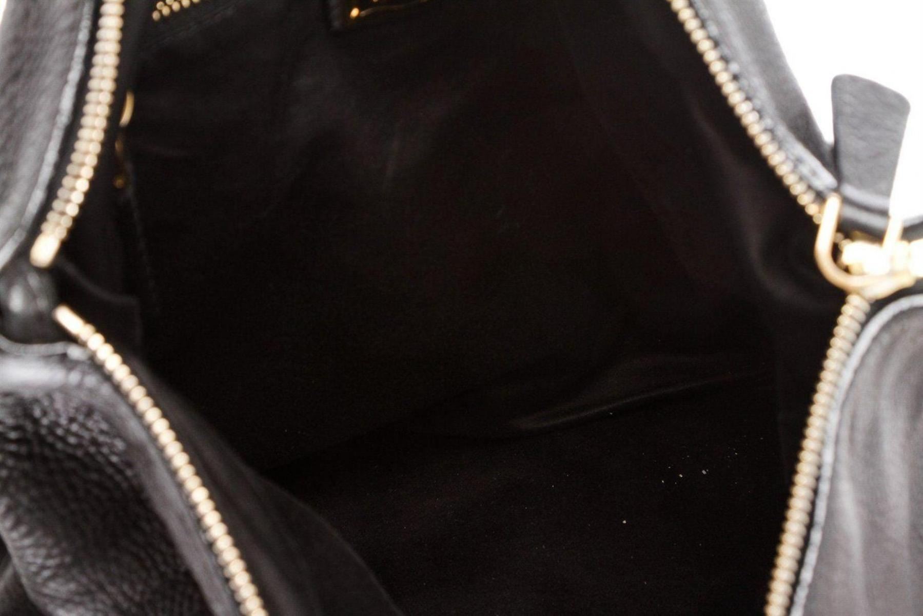 Overall flap over zip top closure, dual rolled handles, and gold tone hardware. Interior is black fabric lined with one zip pocket. Measurements: Length: 14.5 in / 37 cm Width: 5 in / 13 cm 14 in / 36 cmGood overall, please see photographs for detail.