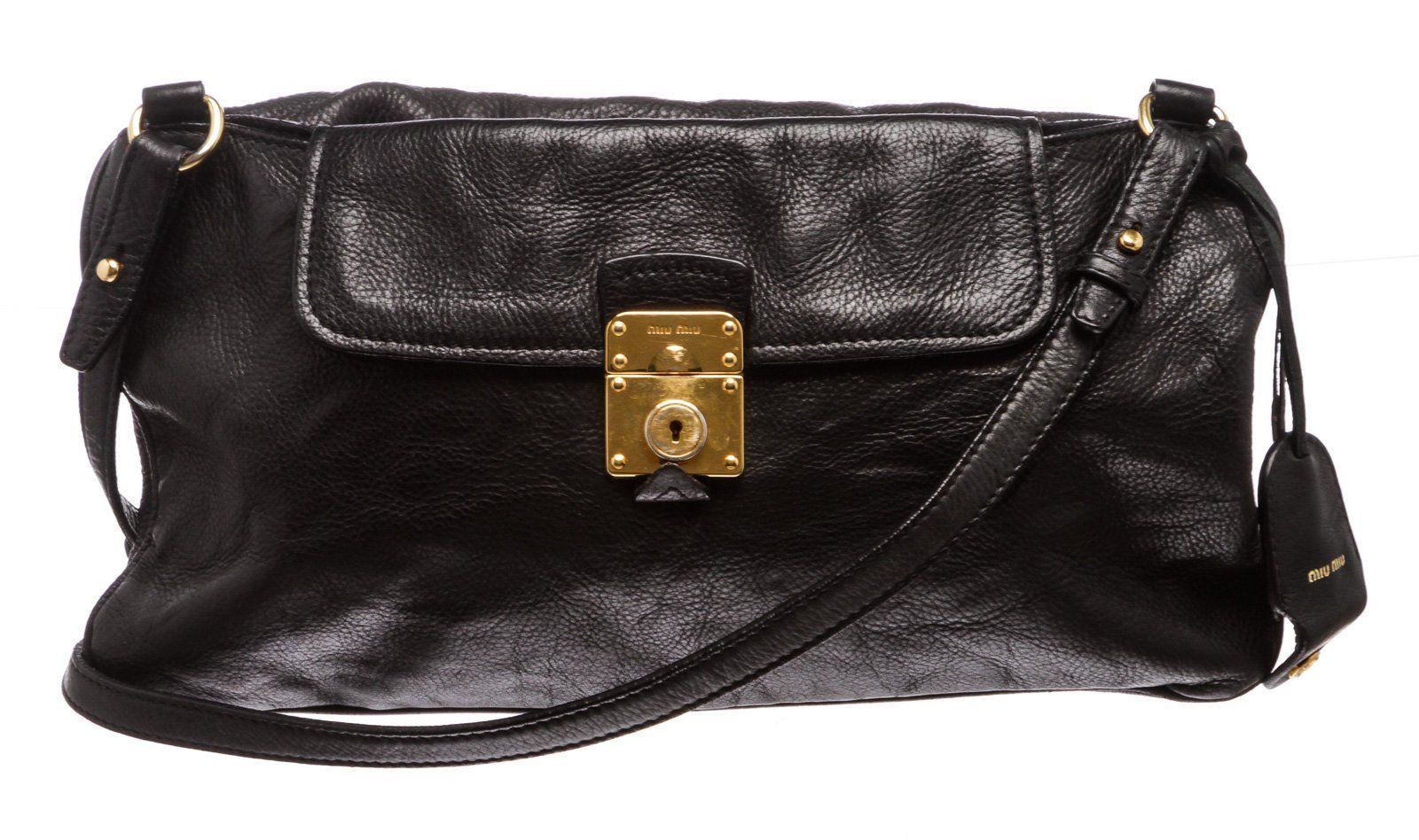 Overall flap over zip top closure, dual rolled handles, and gold tone hardware. Interior is black fabric lined with one zip pocket. Measurements: Length: 14.5 in / 37 cm Width: 5 in / 13 cm 14 in / 36 cmGood overall, please see photographs for detail.