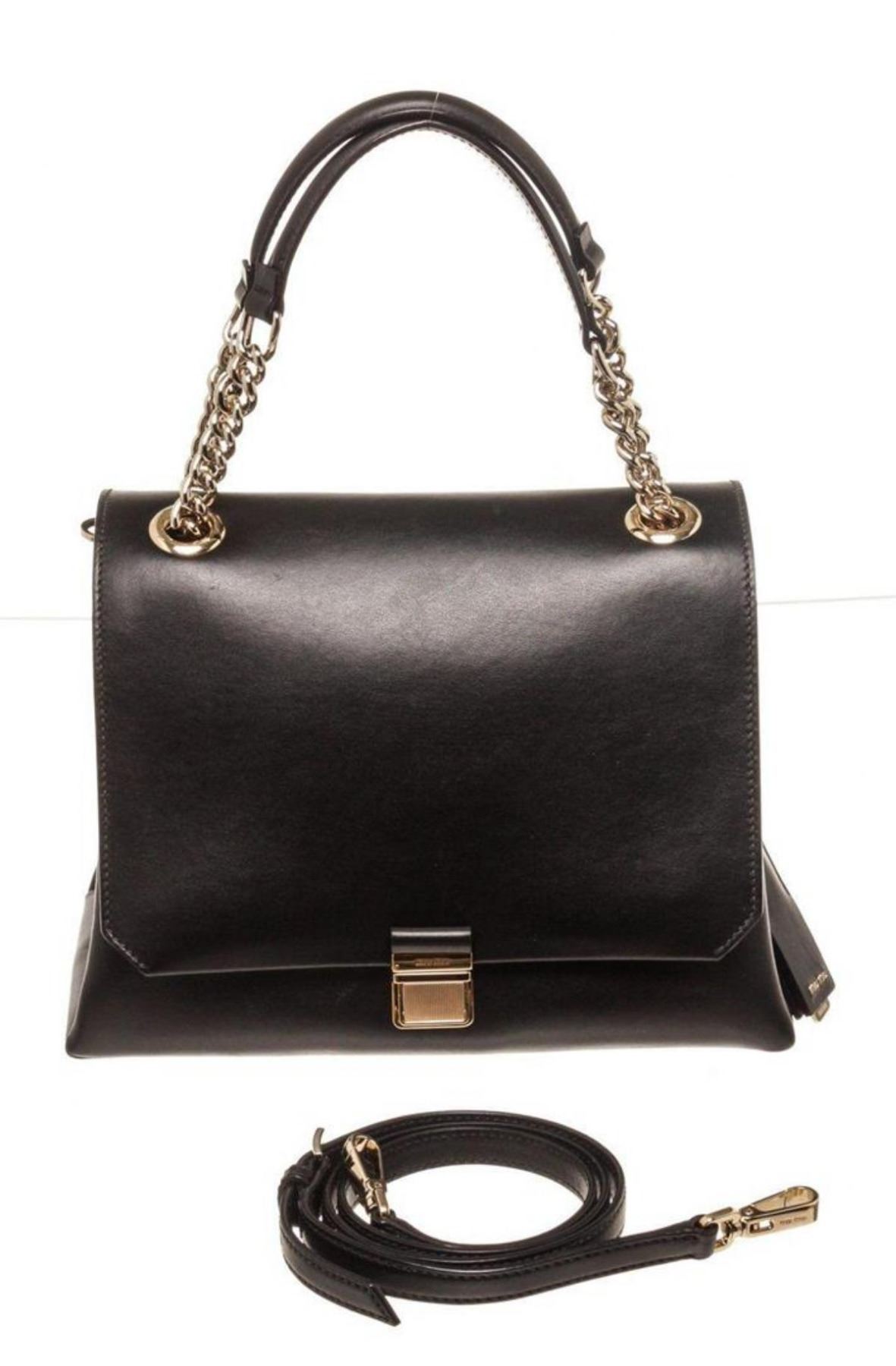 Miu Miu Black Leather Chain Handbag. Miu Miu Black Leather Chain Handbag with material leather, gold-tone hardware, trim leather, interior zip pocket, chain shoulder strap and push lock closure.