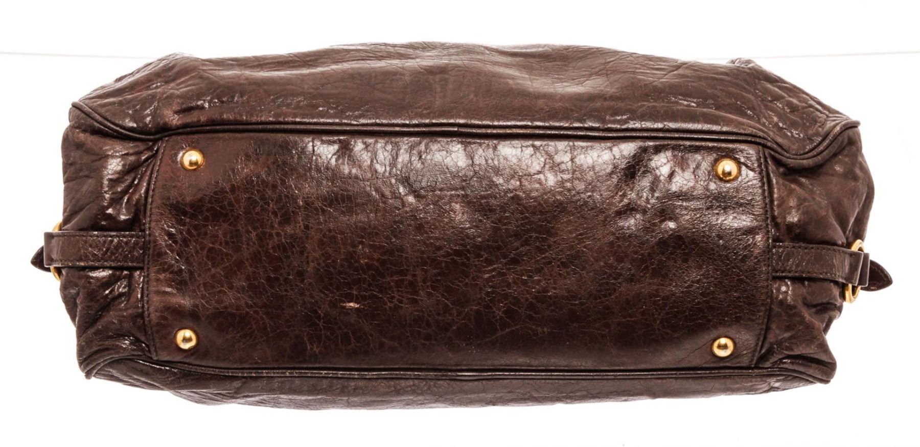 Miu Miu Black Leather Two Way Bag Shoulder bag with material leather, gold-tone hardware, exterior zip pocket, interior zip pocket, leather lining, shoulder strap and zip closure.