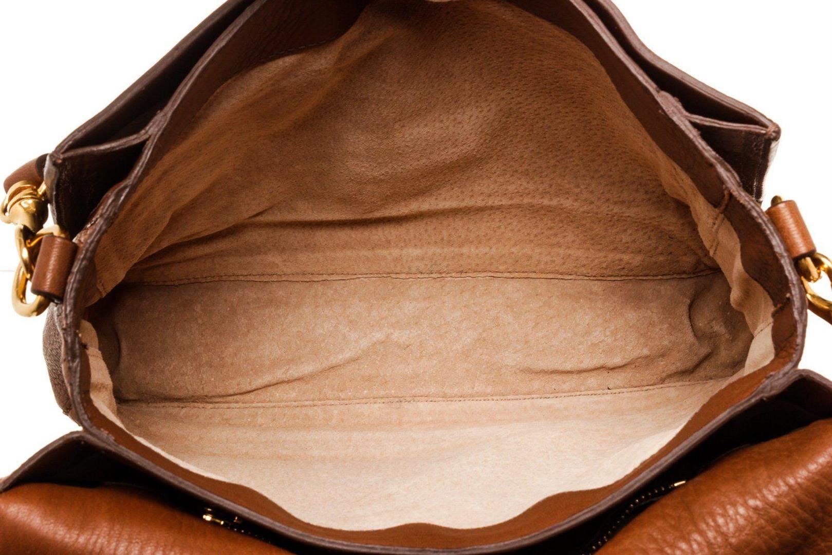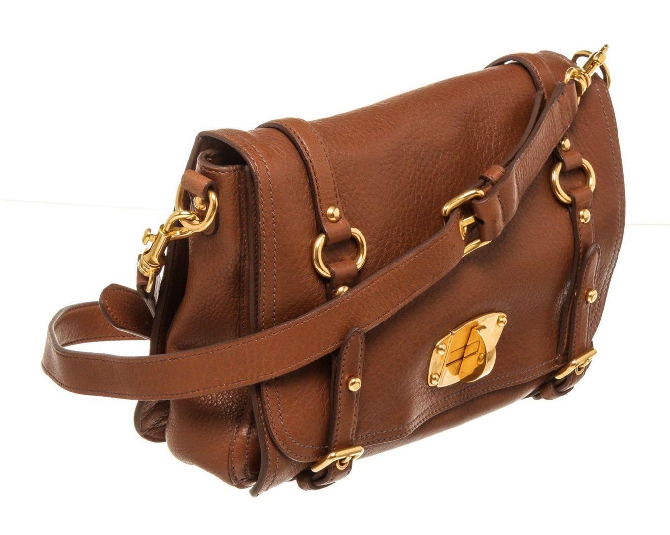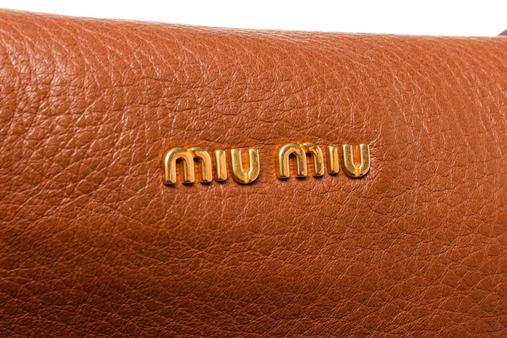 Miu Miu Brown Leather Small Shoulder Bag with material leather, gold-tone hardware, leather lining, interior slip pockets, shoulder strap and turn lock closure.