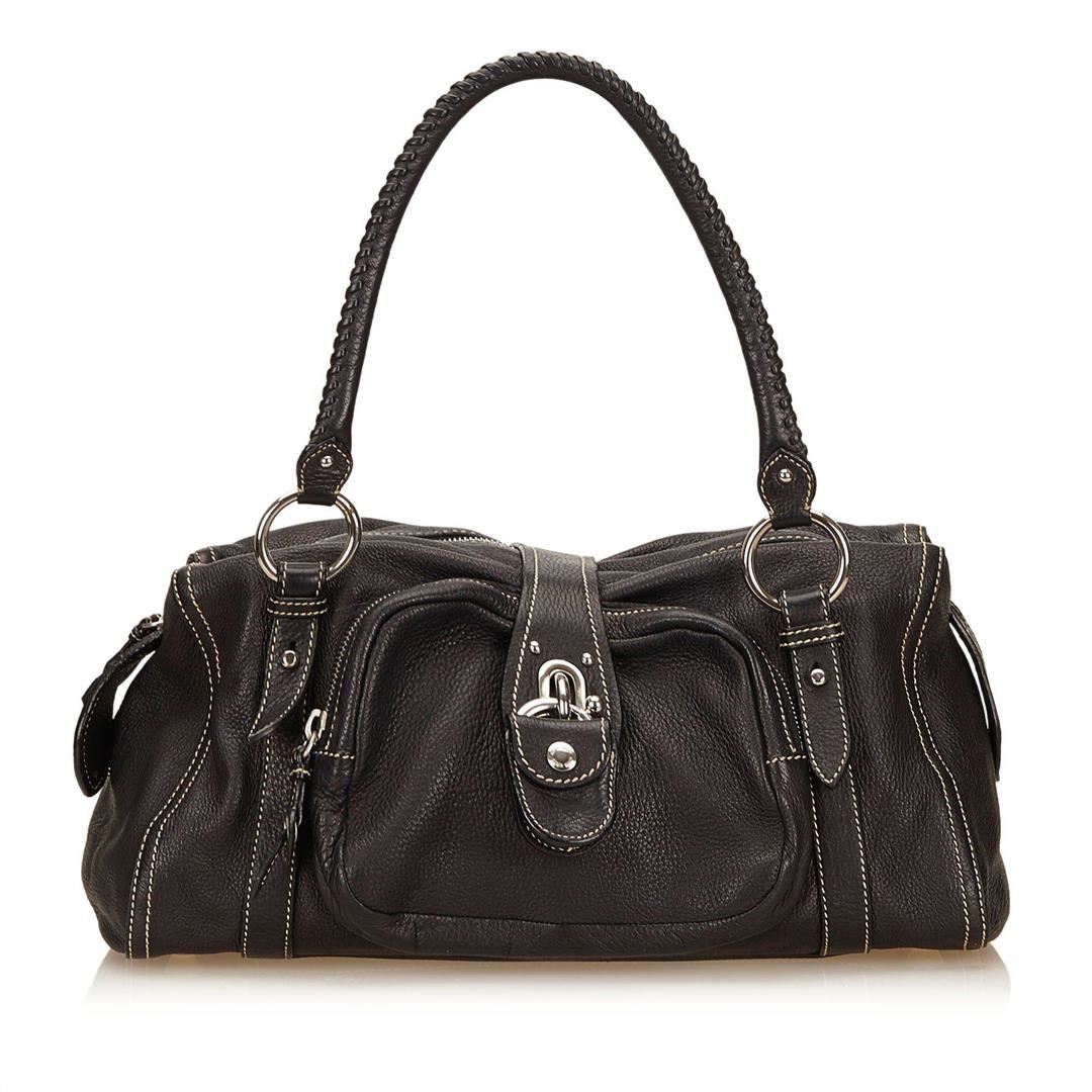 This shoulder bag features a leather body, silver-tone hardware, front exterior zip pocket, rolled leather handles, and interior zip pocket. Measurements: Length: 37 in / 94 cm Width: 19 in / 48 cm 21 in / 53 cmCONDITION: Pre-Owned Good overall, please see photographs for detail.