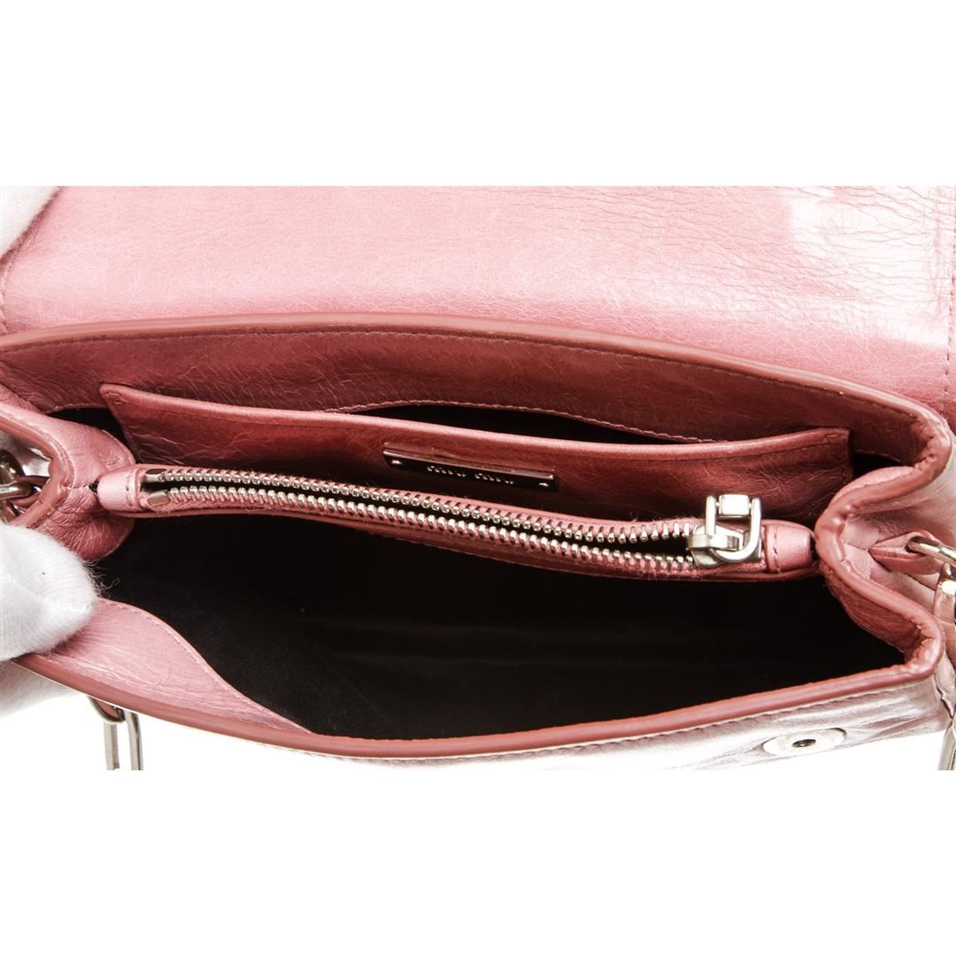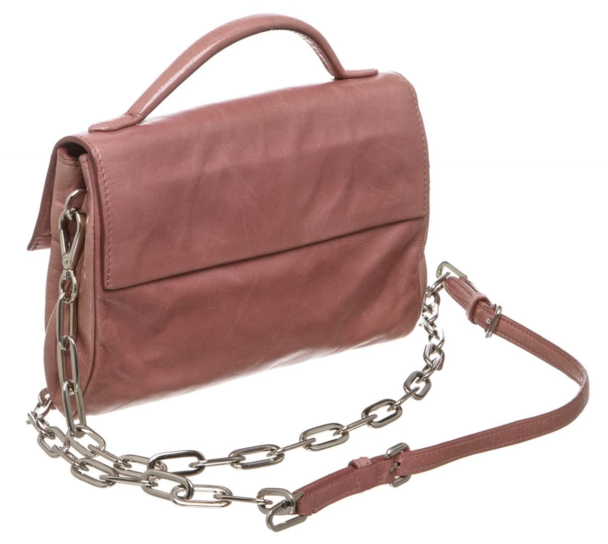 Overall flap magnetic button closure, single flat handle, and silver-tone hardware. Interior is fabric lined and contains zipper pocket.