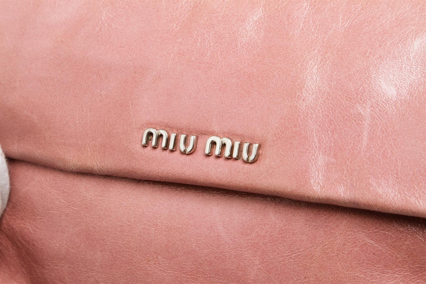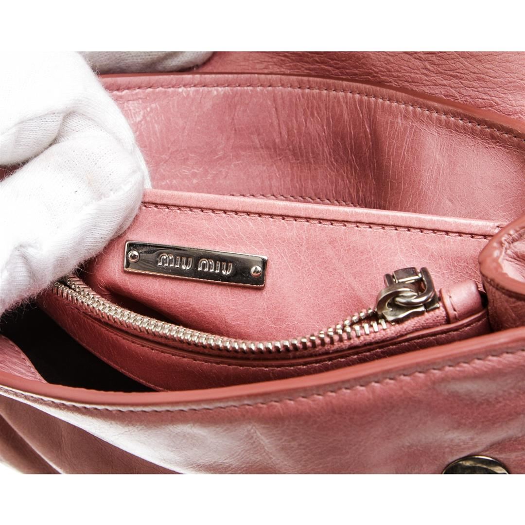 Overall flap magnetic button closure, single flat handle, and silver-tone hardware. Interior is fabric lined and contains zipper pocket.