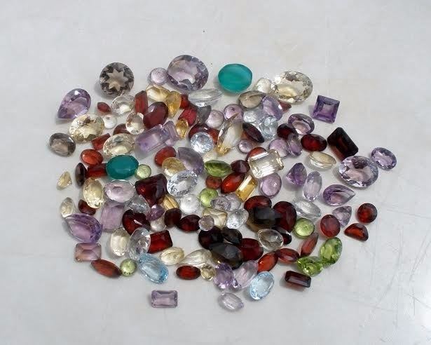 Mix Gems 100 carats..... amethyst, citrine, garnet, carnelian, green agate, peridot, yellow quartz, smoky quartz, white topaz, and sky blue topaz. Size range of gems in this mix is 3mm to as large as 14mm. 100 carats will be random scoop from this lot. We have over 10 thousand Carats mix lot available. if you are looking for more quantity then please contact me.