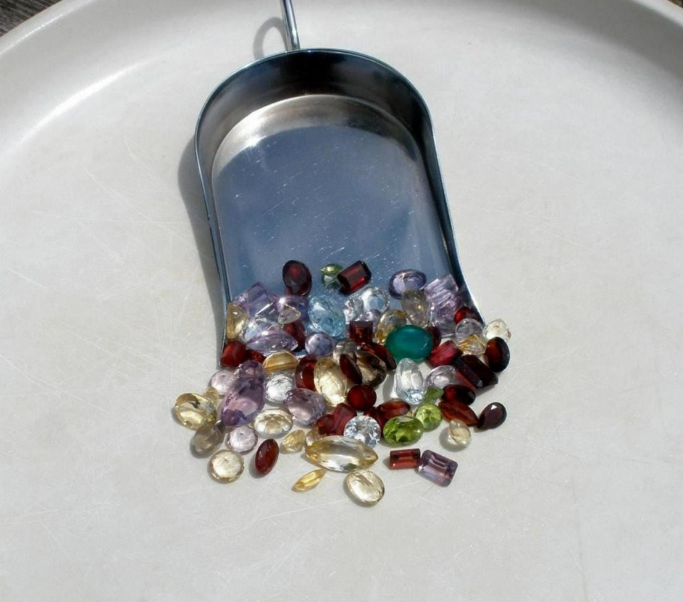 Mix Gems 100 carats..... amethyst, citrine, garnet, carnelian, green agate, peridot, yellow quartz, smoky quartz, white topaz, and sky blue topaz. Size range of gems in this mix is 3mm to as large as 14mm. 100 carats will be random scoop from this lot. We have over 10 thousand Carats mix lot available. if you are looking for more quantity then please contact.