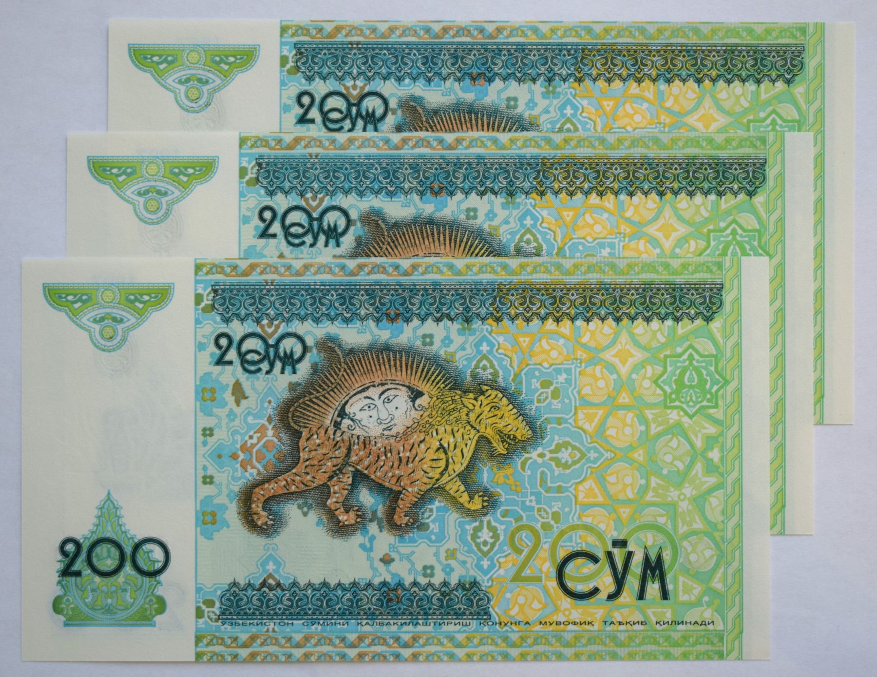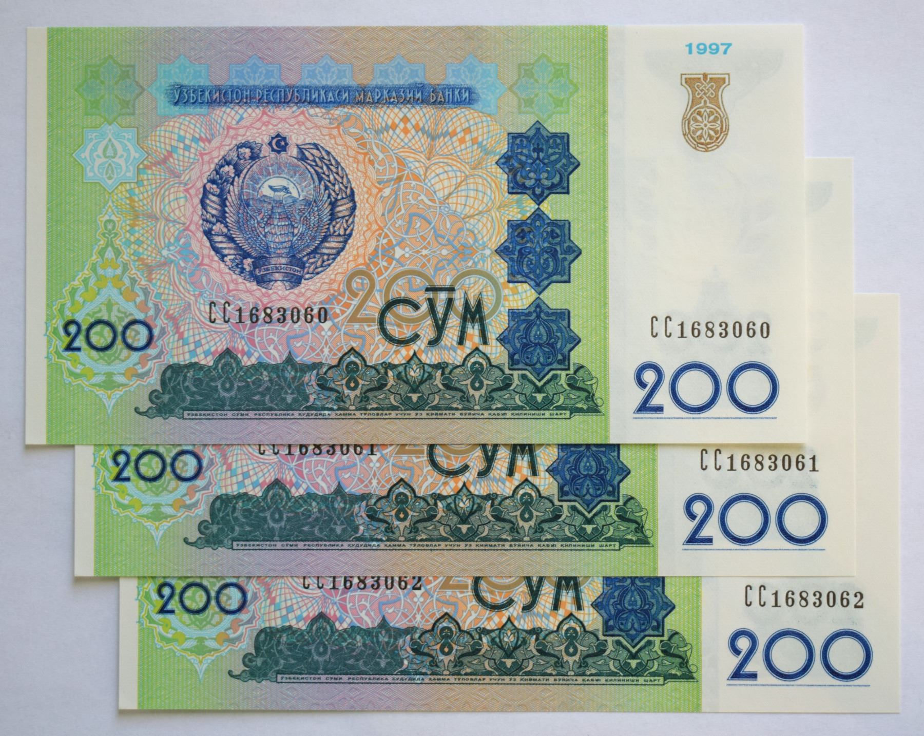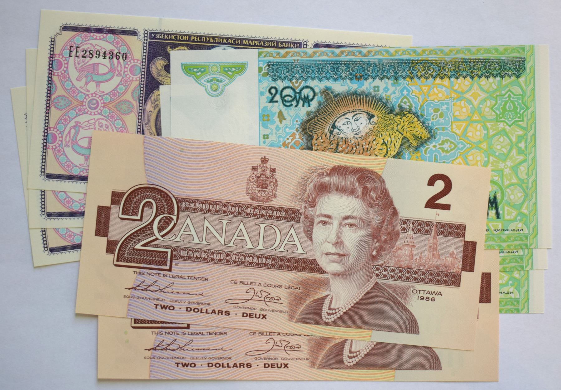 Mix Lot of 2 Trio of Banknotes, Uzbekistan 100 & 200 Sum 1994-97 all consecutive from Bundle + Canada's Pair 1986 BBZ from Bundle, all Gem. Intreresting Mix (8)