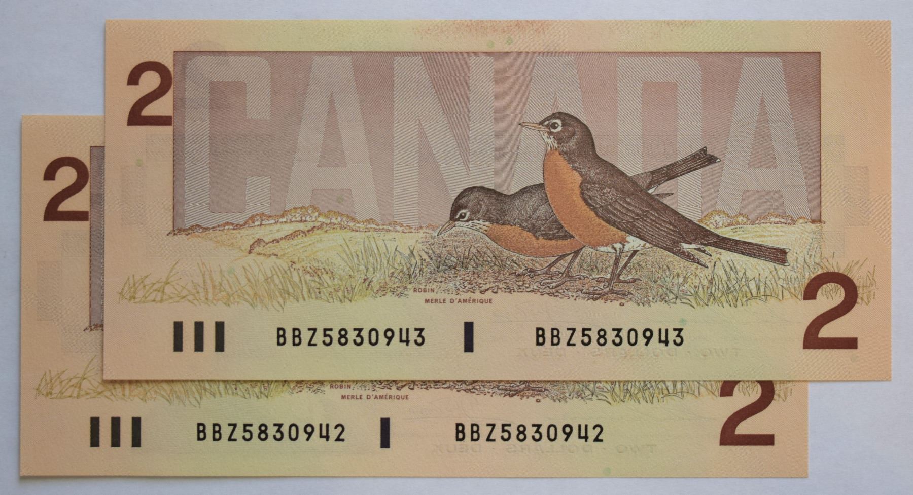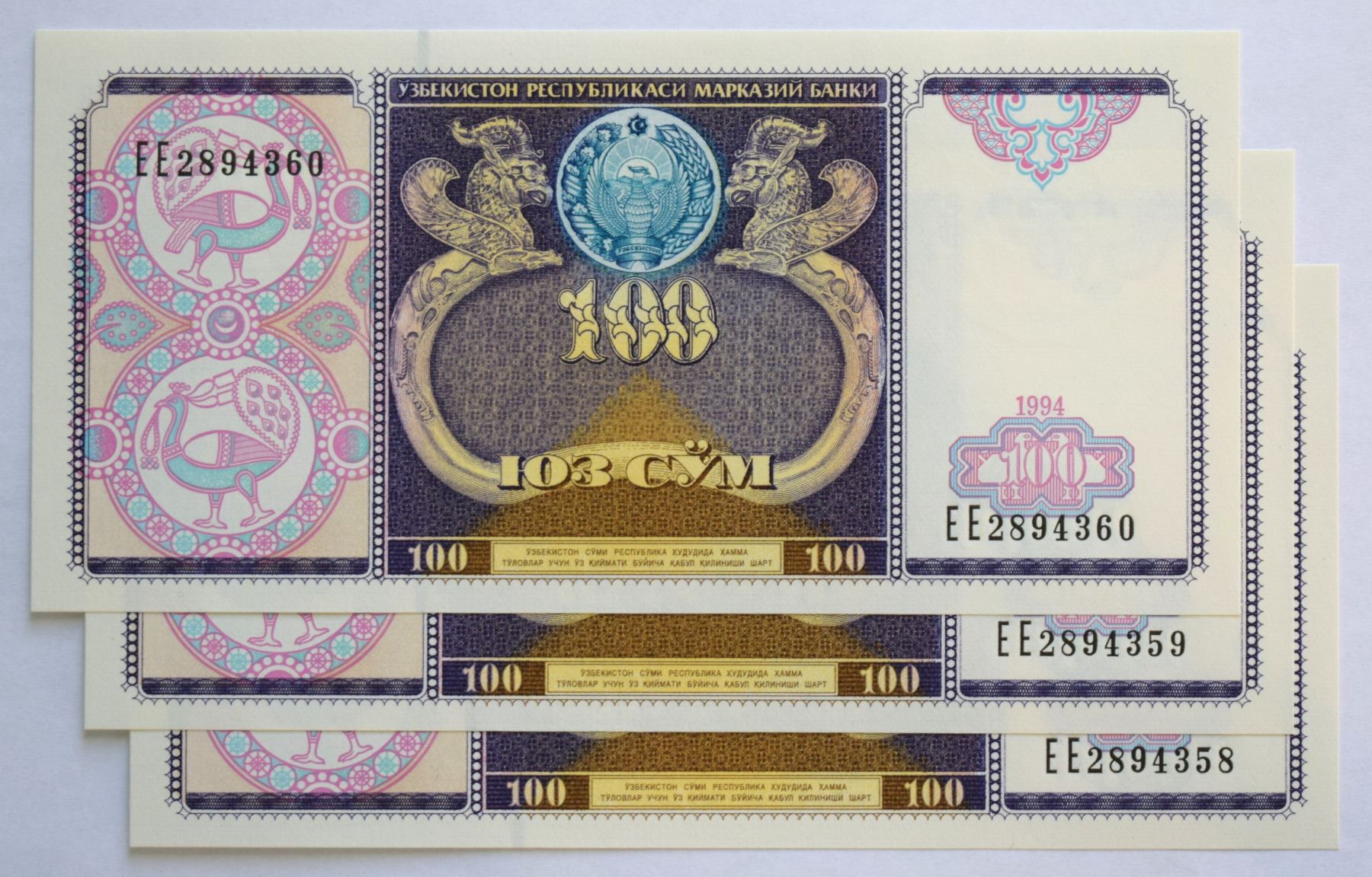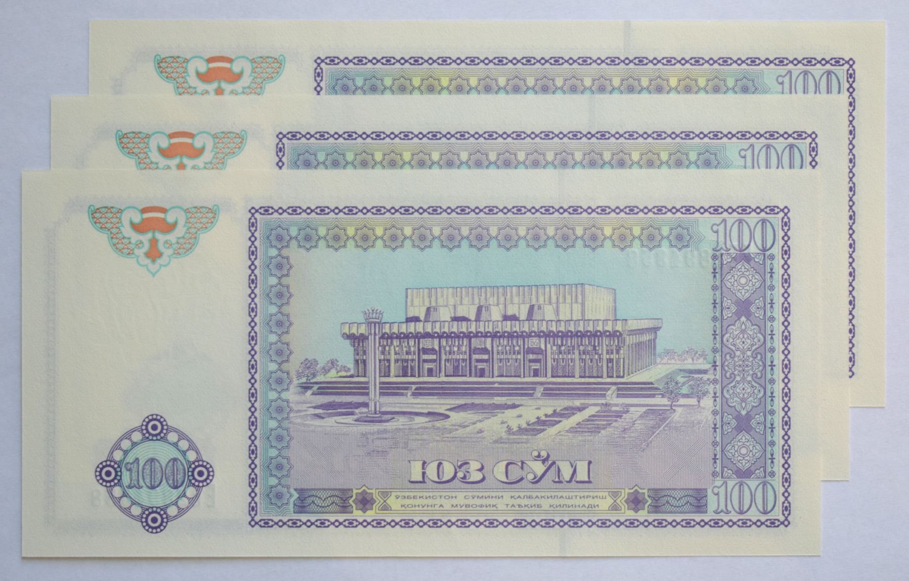 Mix Lot of 2 Trio of Banknotes, Uzbekistan 100 & 200 Sum 1994-97 all consecutive from Bundle + Canada's Pair 1986 BBZ from Bundle, all Gem. Intreresting Mix (8)