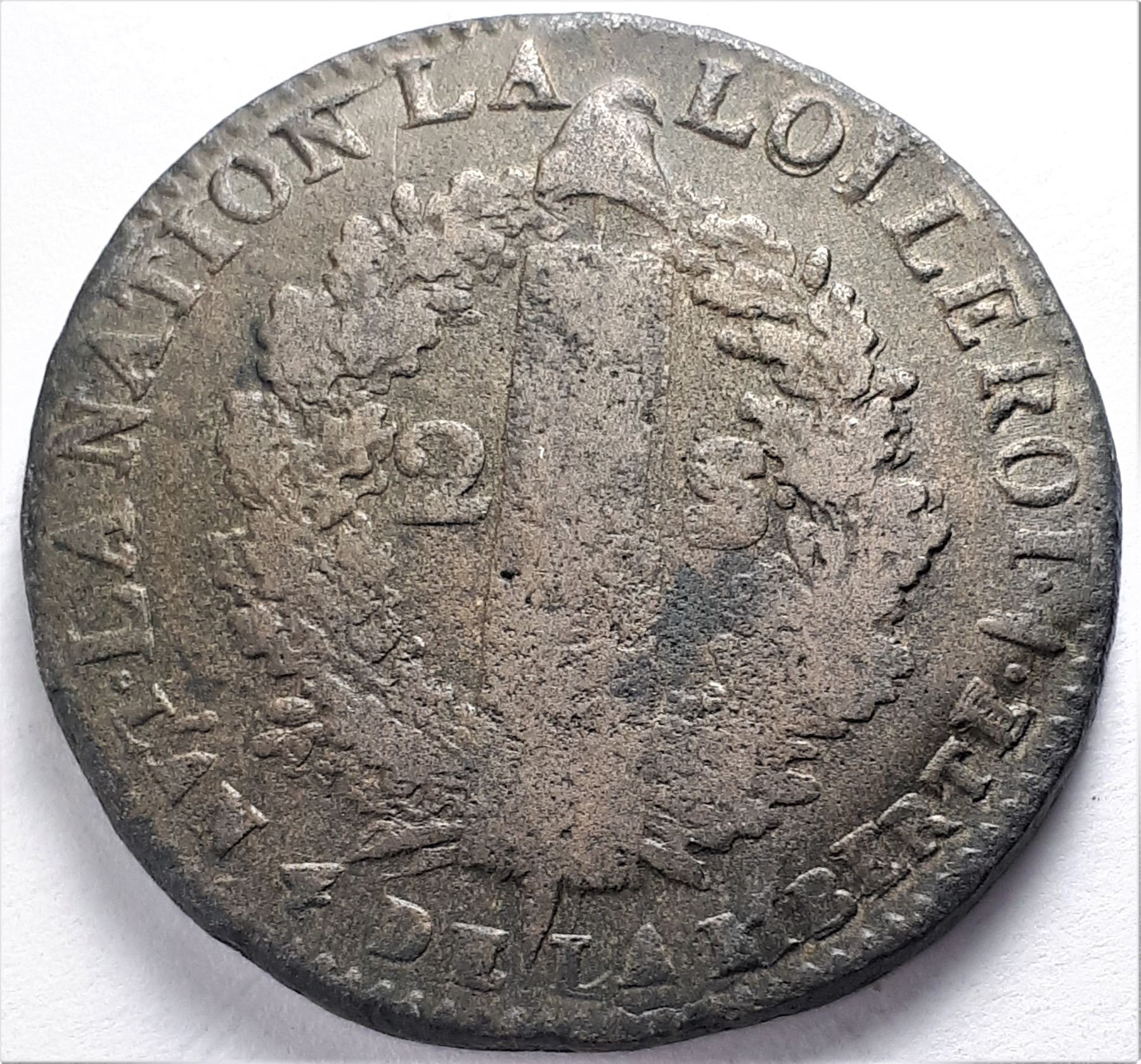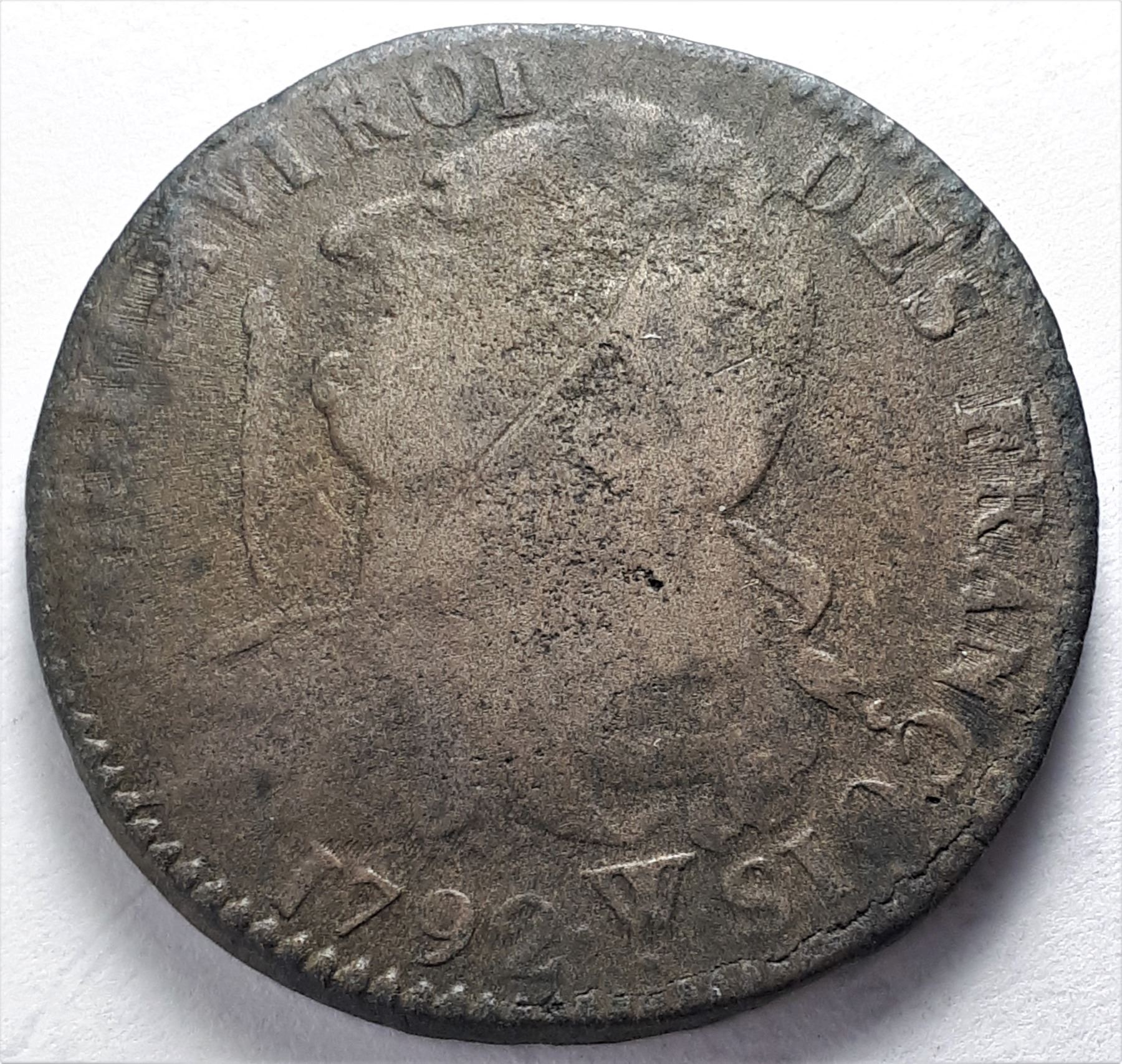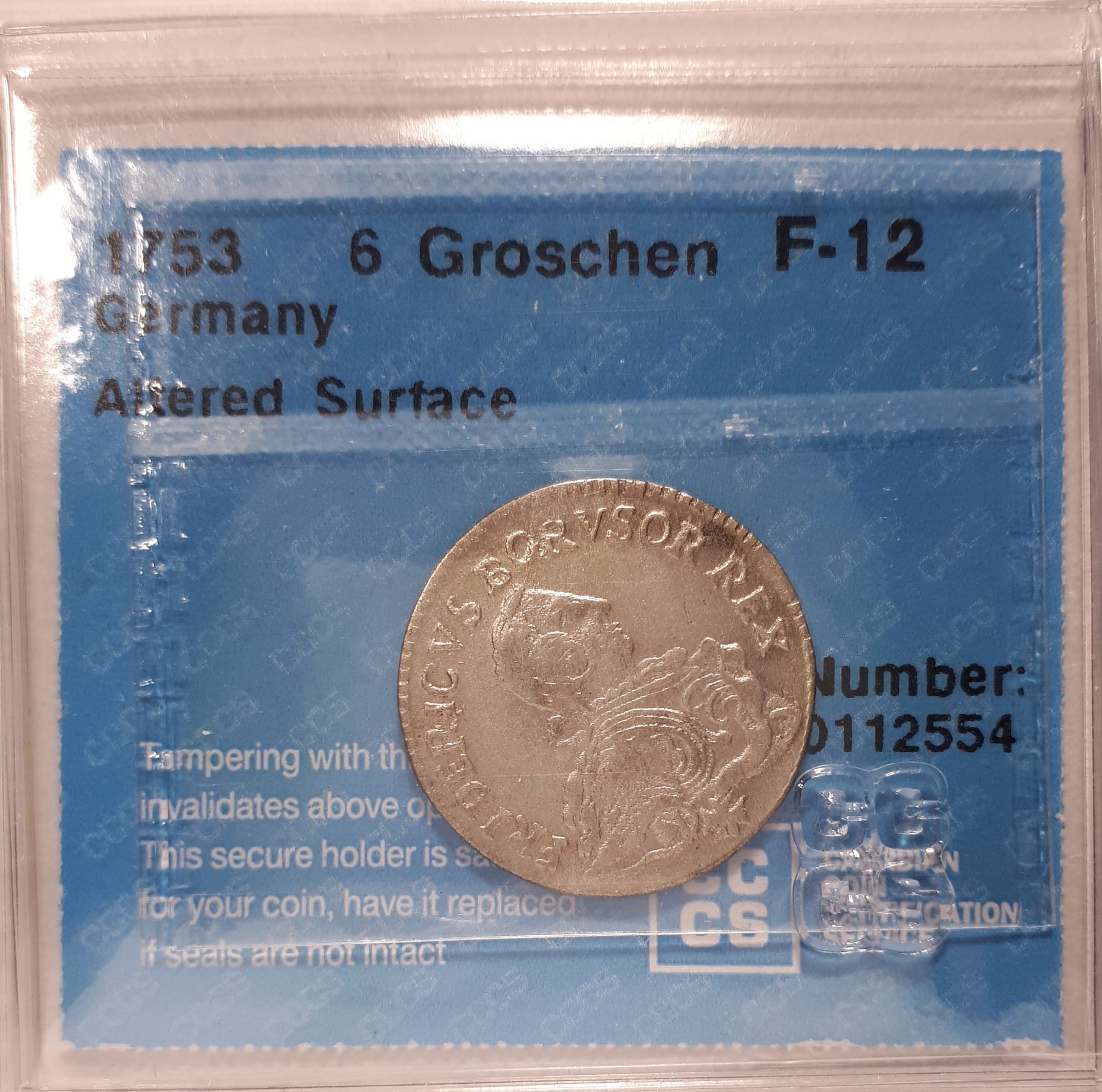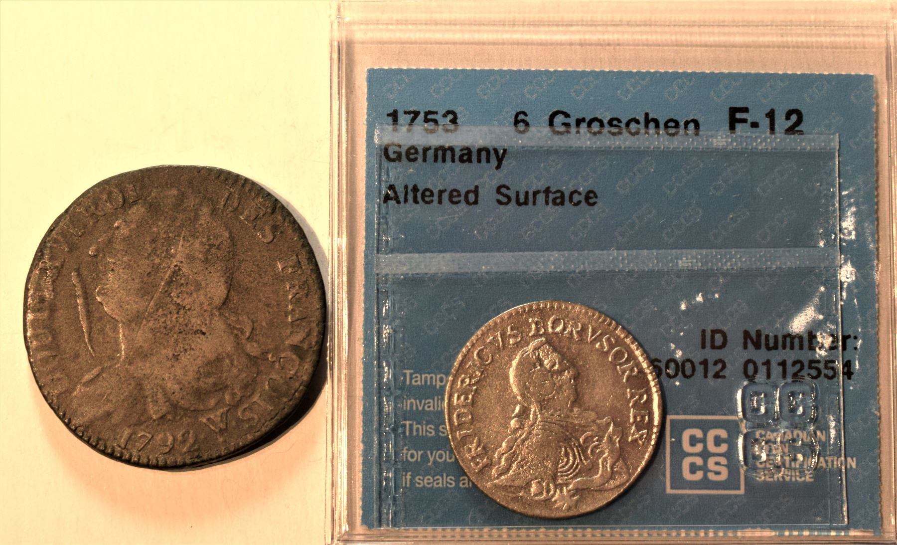Mix lot France/Germany 2 Sols 1792-W Louis XIV Mint Lille, Weak/Double struck Reverse + 6 Groschen 1753 State of Prussia Altered Surface (Enviromental Damage) both F but one certified CCCS (2)