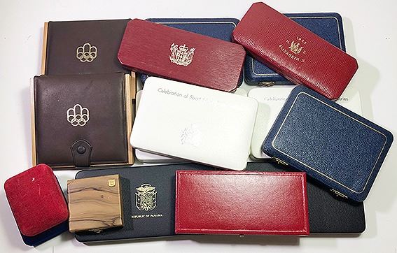 Mixed accumulation of empty coin cases, some early South African proof sets, New Zealand, etc (lot)