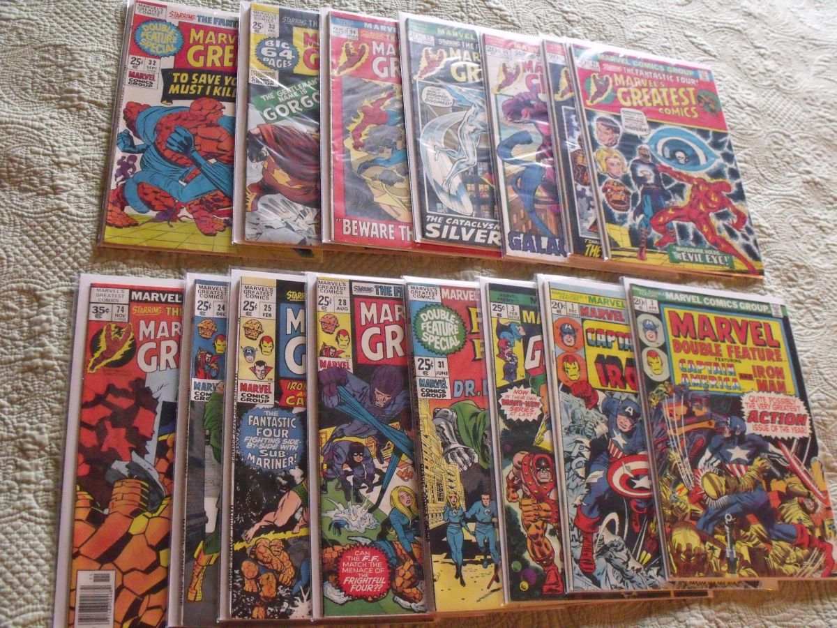 Marvel's Greatest Comics #24-25, 28, 31-36, 39, 41, 74, Marvel Triple Action #1-3, 5-7, 9, 11, Marvel Spectacular #3, 11, Special Marvel Edition #1, 3-5, 7, 15, Marvel Double Feature #1, 3, Marvel Presents #3. 31 issues total, avg condition ranges from FN to VF
