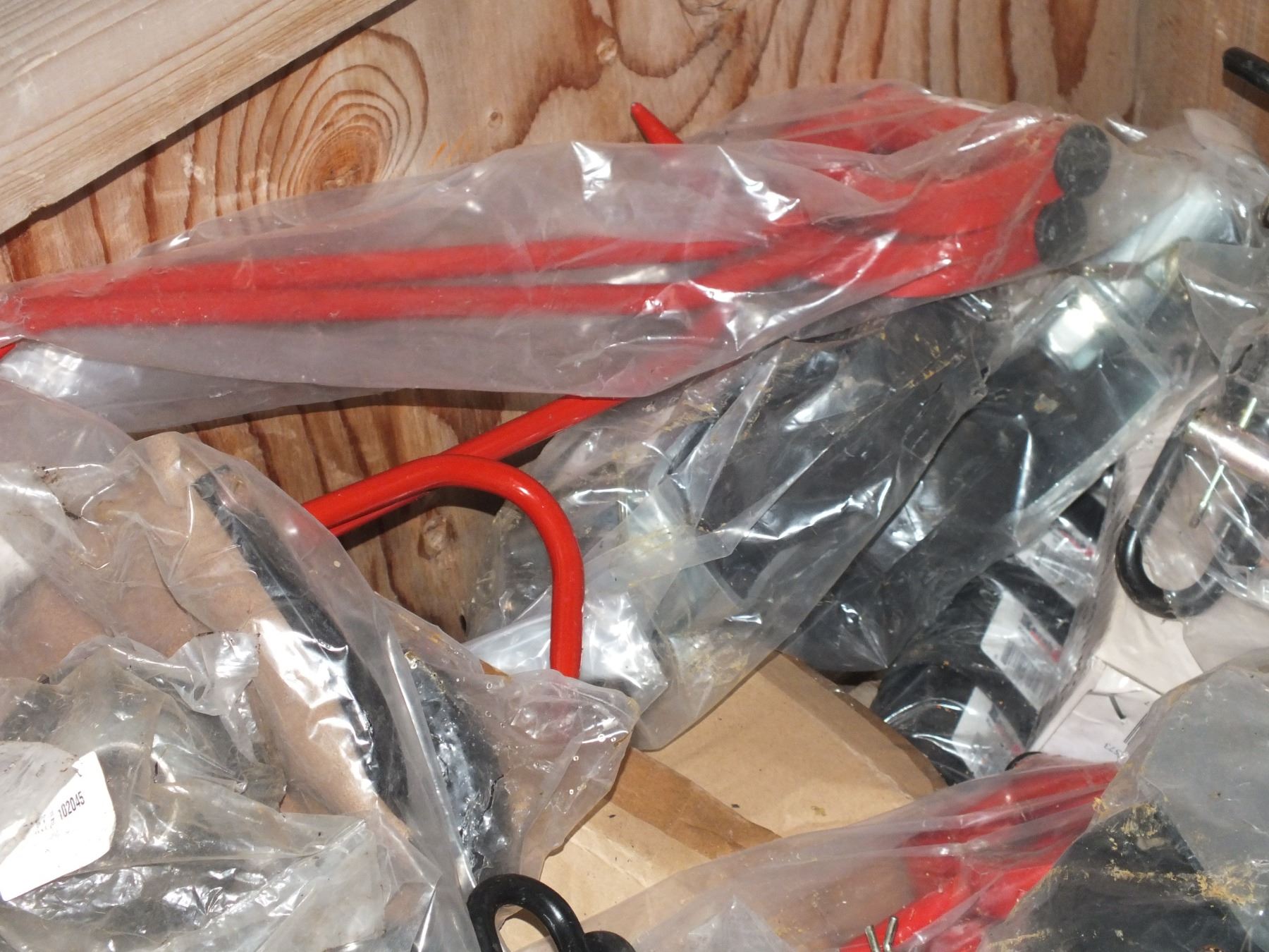 you get it all for one money, pins, cowbells, hay hooks, wheels, turn buckles, hitches, hooks, bearings and clevis's...all new