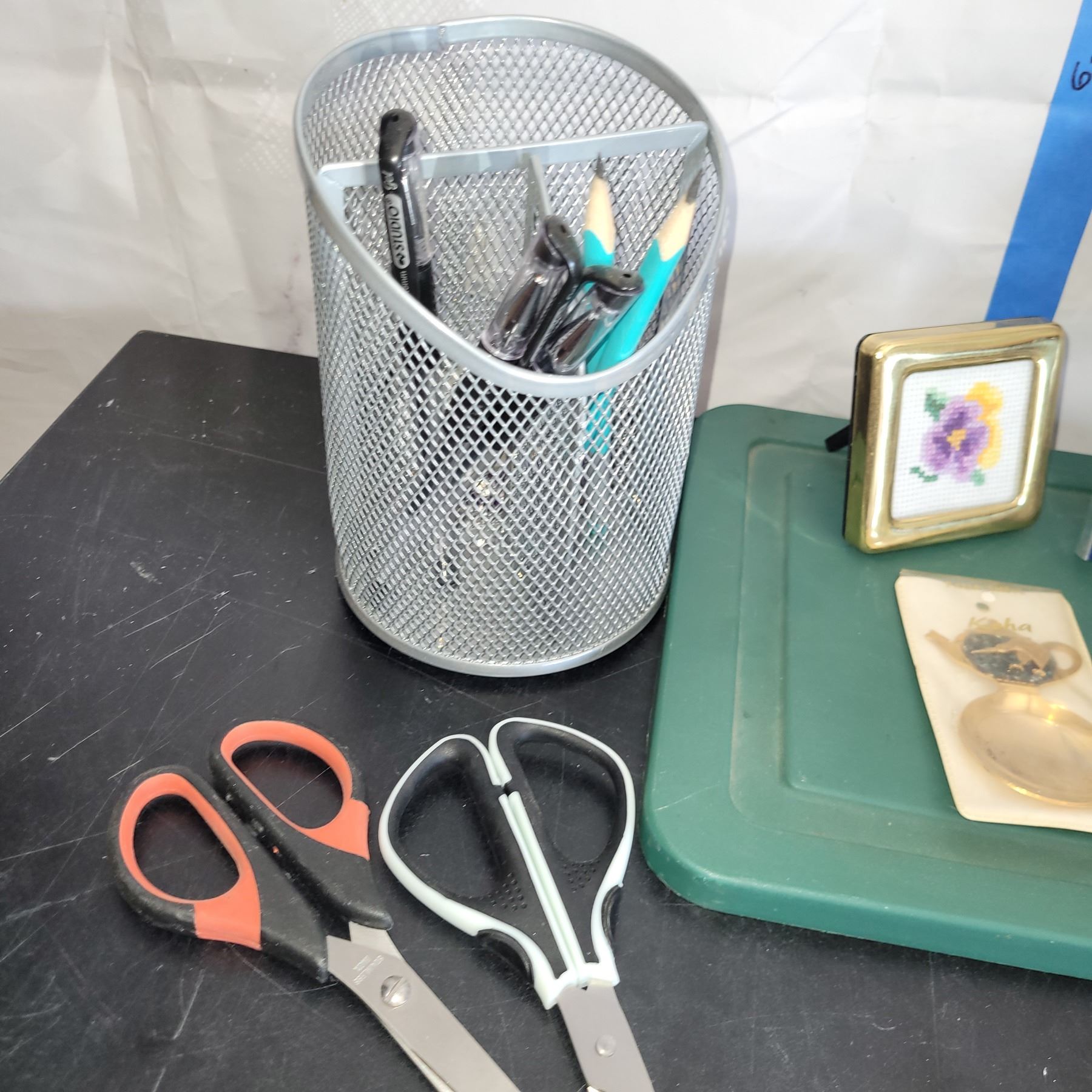 Mixed Estate Lot - Stationary Holder with contents, Paua Shell trinket ++