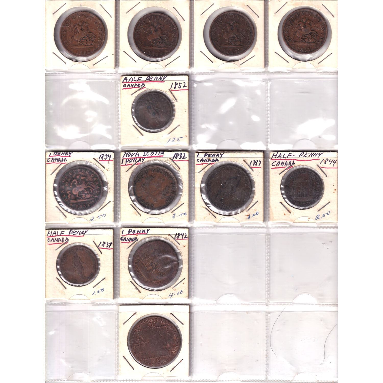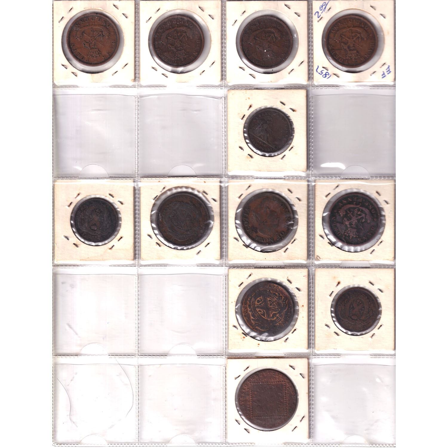 Mixed Estate Lot of Copper Bank Tokens 1800's. 12pcs. Good mixture. Please view the images for details.