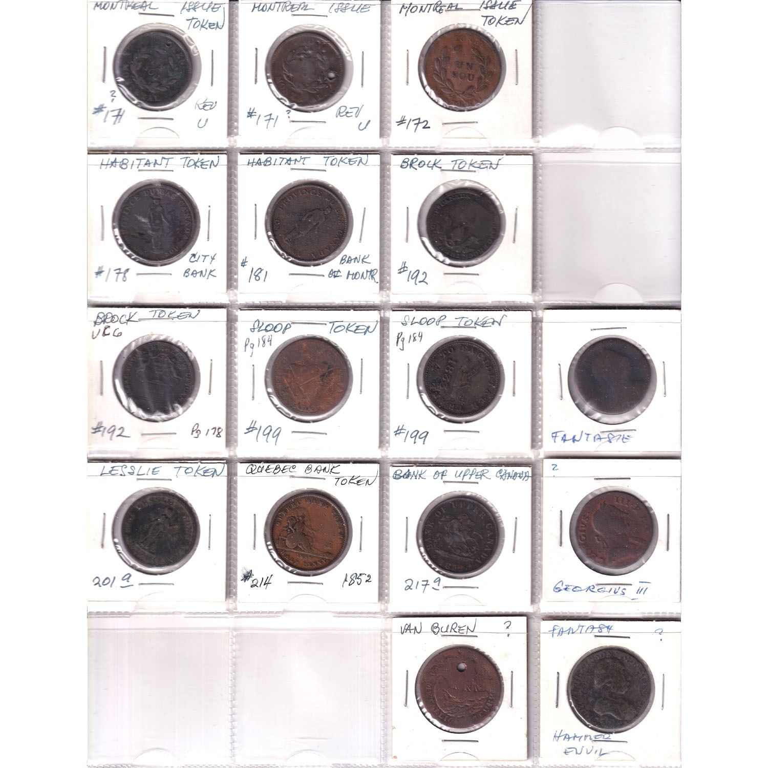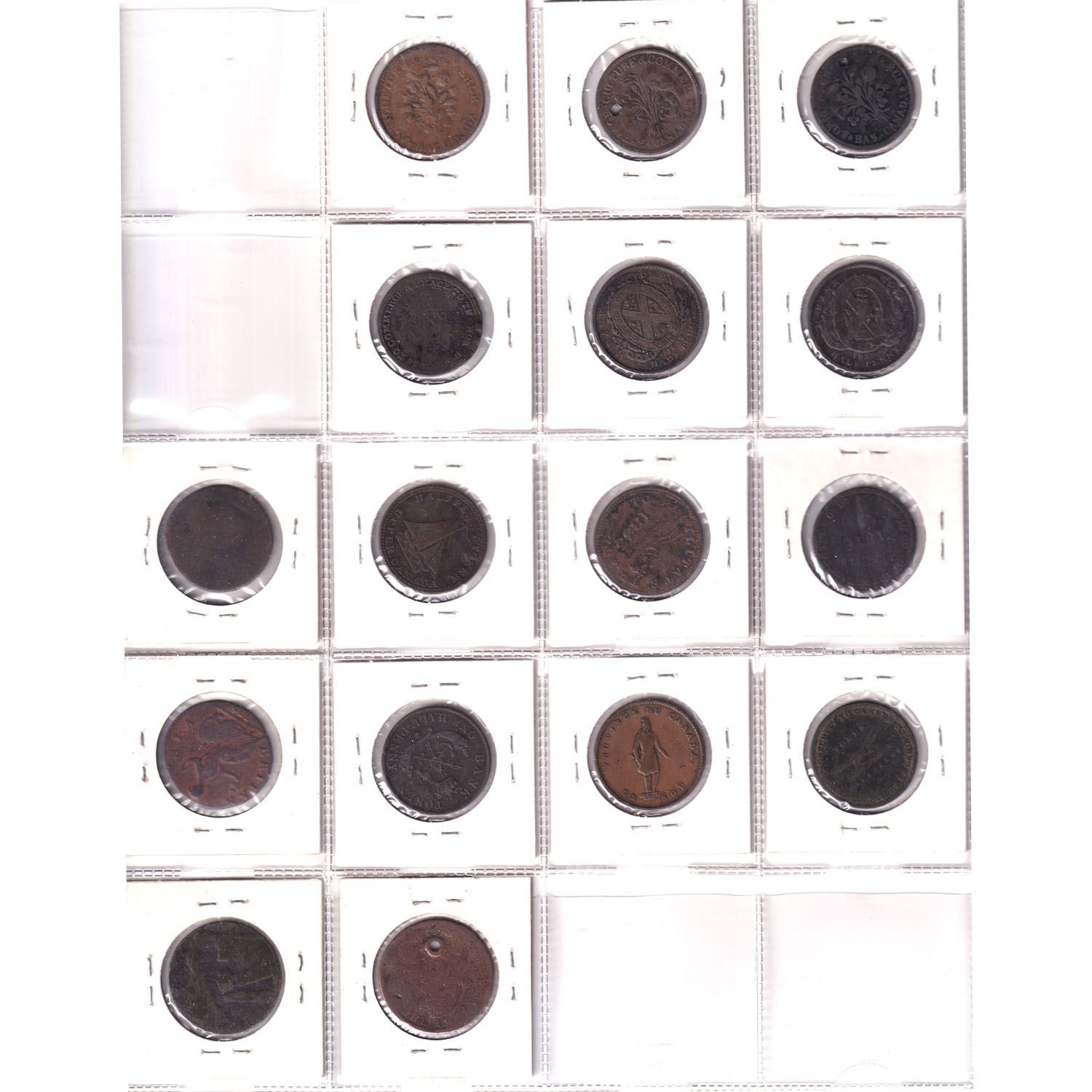 Mixed Estate Lot of Copper Bank Tokens 1800's. 16pcs. Good mixture. Please view the images for details.
