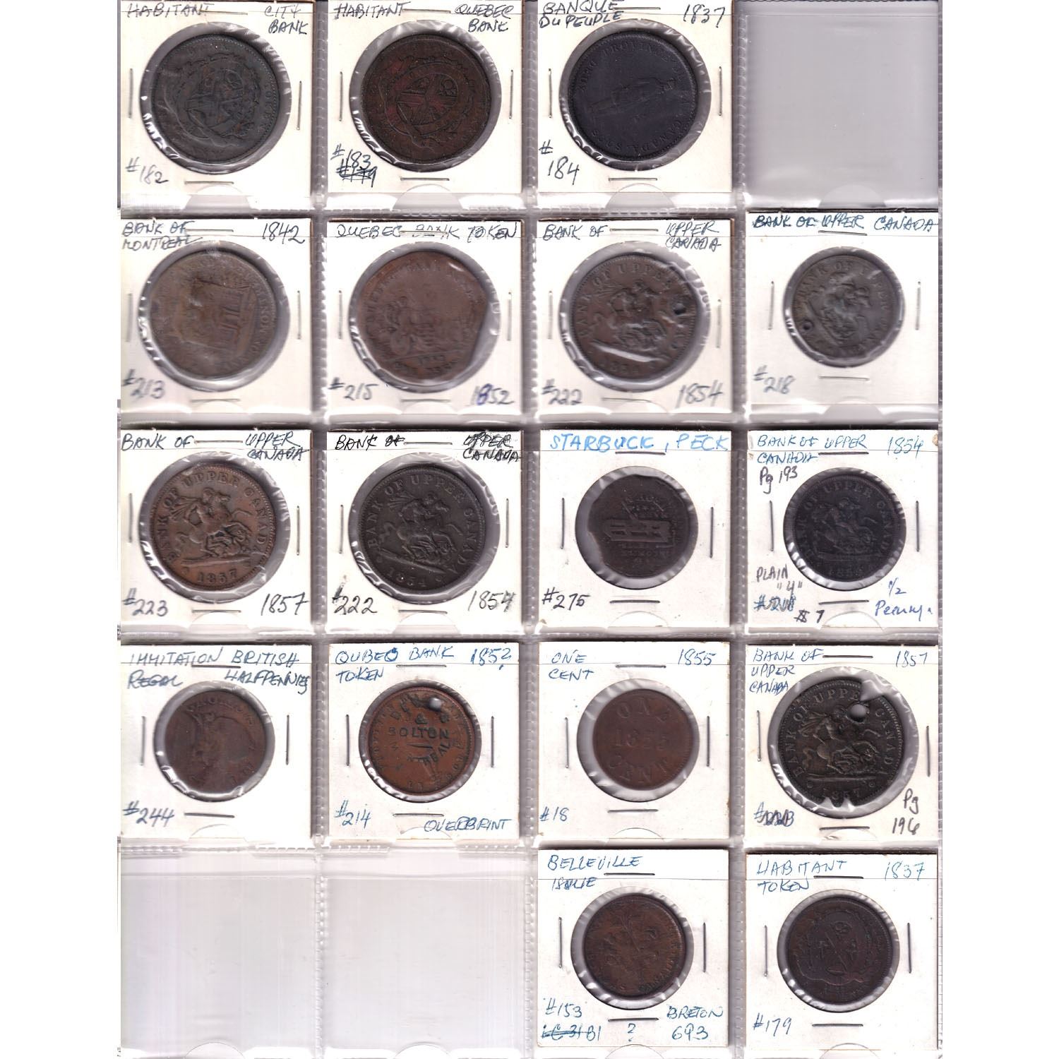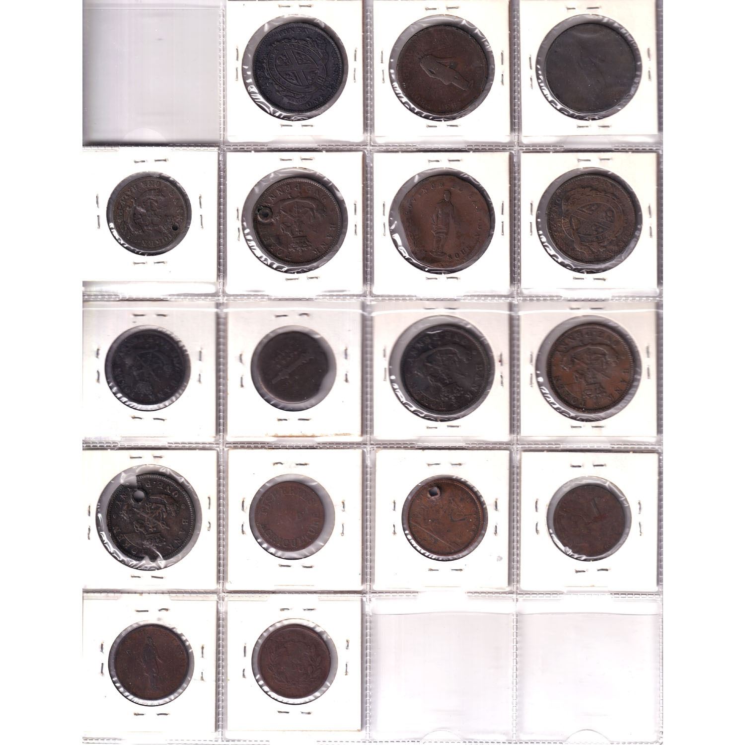 Mixed Estate Lot of Copper Bank Tokens 1800's. 17pcs. Good mixture. Please view image for details.