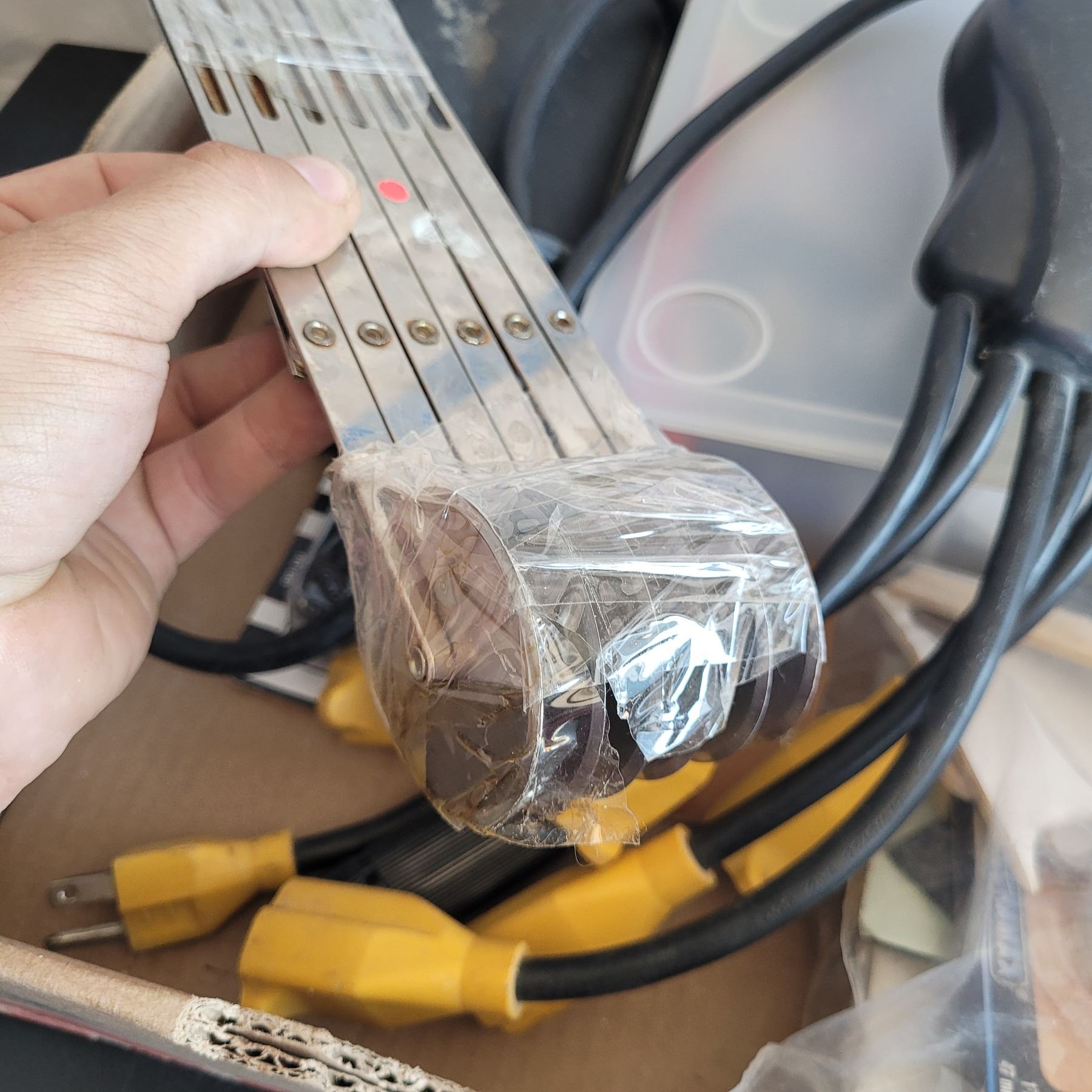 Mixed Estate hardware Lot - Outdoor Multi Outlet Extension Cord, Felt Protectors, Wheel +