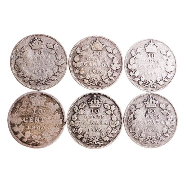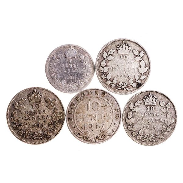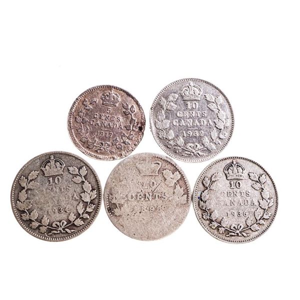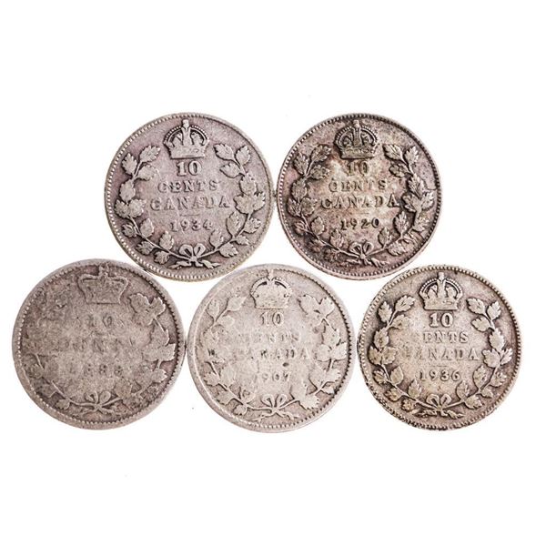 Group of 5 Canada Silver 10 cent Coins 3001476