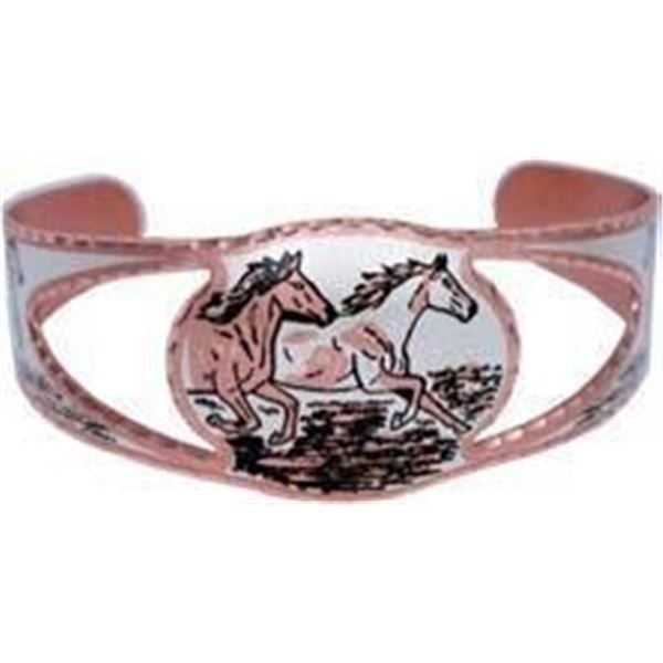 Copper Cut Out Bangle Cuff Bracelet - Silver Plate Diamond Cut Artist's Design - Running Horse1317 - Copper Cut Out Bangle Cuff Bracelet - Silver Plate Diamond Cut Artist's Design - Running Horse1
