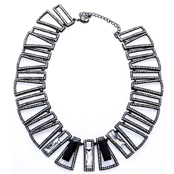 Custom Designer "MM" Choker Style Neck Piece, Rectangle Design w/Bead Set Swarovski Elements.Made in USA 8002227