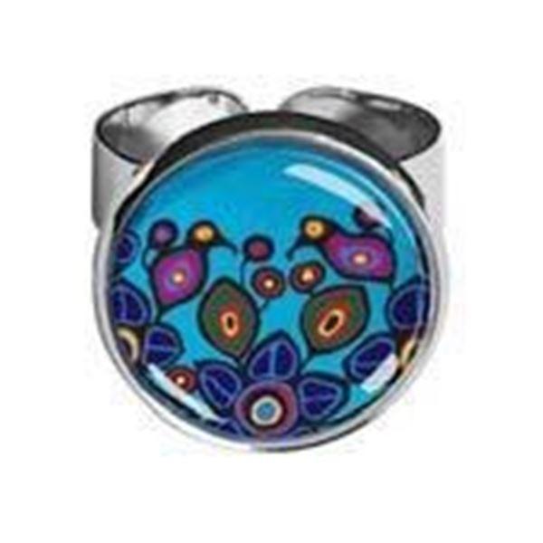 Norval Morrisseau Woodland Artist - Adjustable Dome Ring - " Flowers & Birds"1184 - Norval Morrisseau Woodland Artist - Adjustable Dome Ring - " Flowers & Birds"1