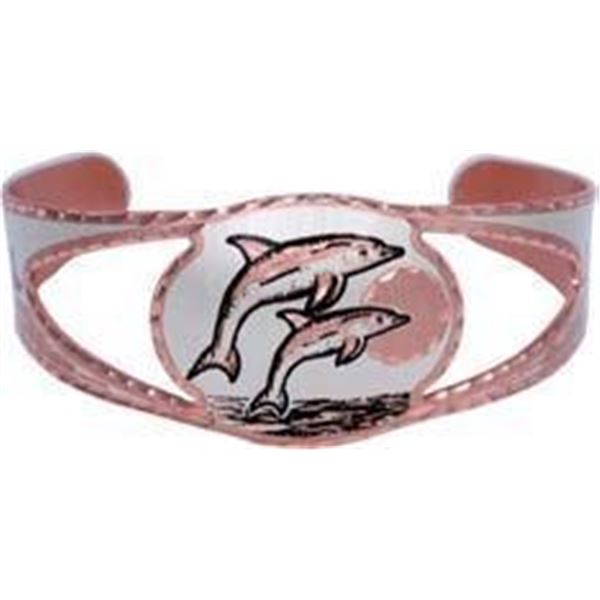 Copper Cut Out Bangle Cuff Bracelet - Silver Plate Diamond Cut Artist's Design -  Two Dolphins1221 - Copper Cut Out Bangle Cuff Bracelet - Silver Plate Diamond Cut Artist's Design - Two Dolphins1