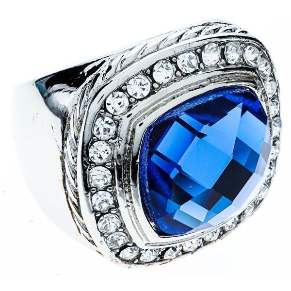 Unisex Ring, Size 7, Silver Blue Topaz Swarovski Element, Bezel Set w/Halo - NO RESERVE. 9001771