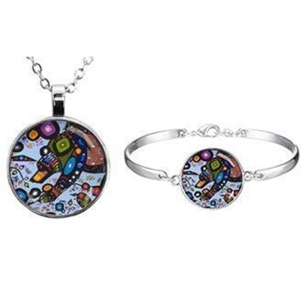 John Rombough First Nations Artist - Necklace & Earring Set - "The Bear" 1224 - John Rombough First Nations Artist - Necklace & Earring Set - "The Bear" 1