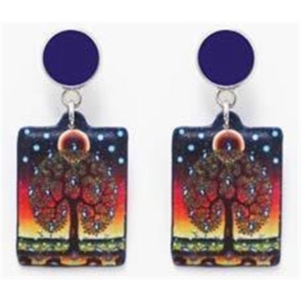 James Lacko Artist - "Tree of Life" Vegan Leather Drop Stud Back Earrings 8006149