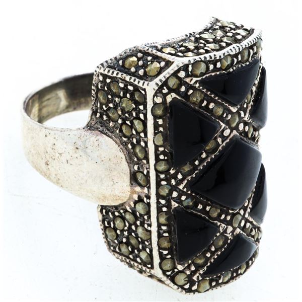 Estate Sterling Silver Ring, Marcasite & Black Onyx - NO RESERVE255 - Estate Sterling Silver Ring, Marcasite & Black Onyx - NO RESERVE