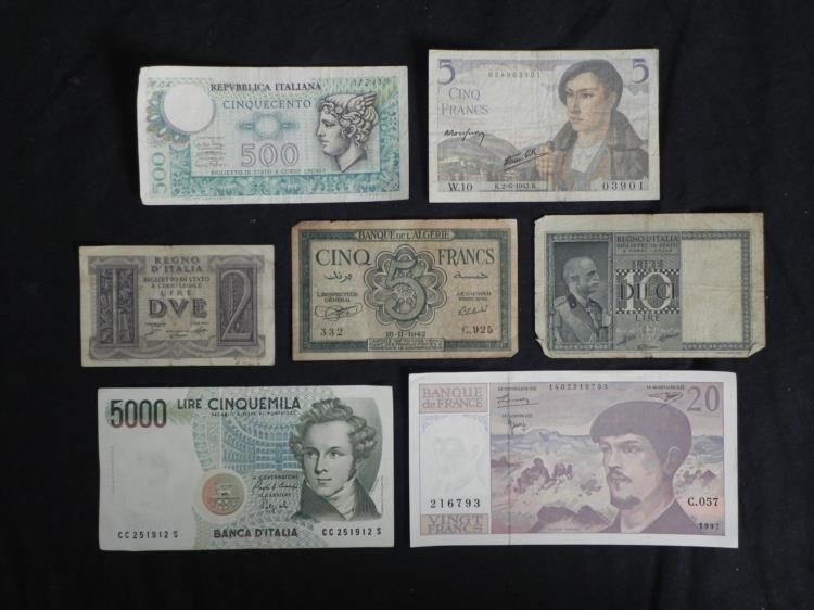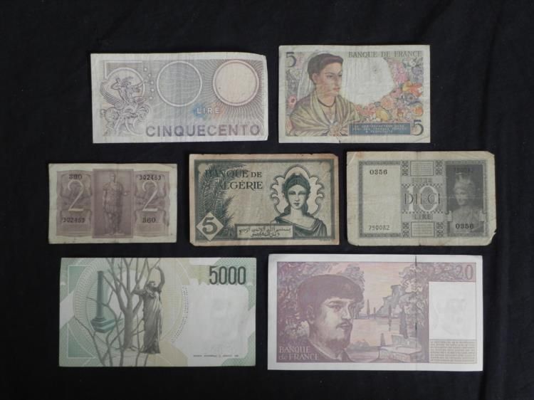 Mixed European Old Paper Money * * Countries: Algeria, France, Italy