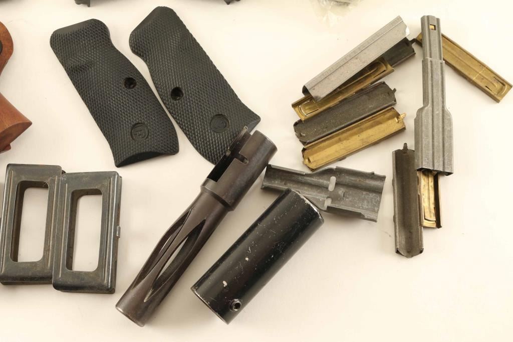 Includes stripper clips, brown and black Ruger made grips, pin on flash hider, screw on muzzle break, and Carcano Clips.