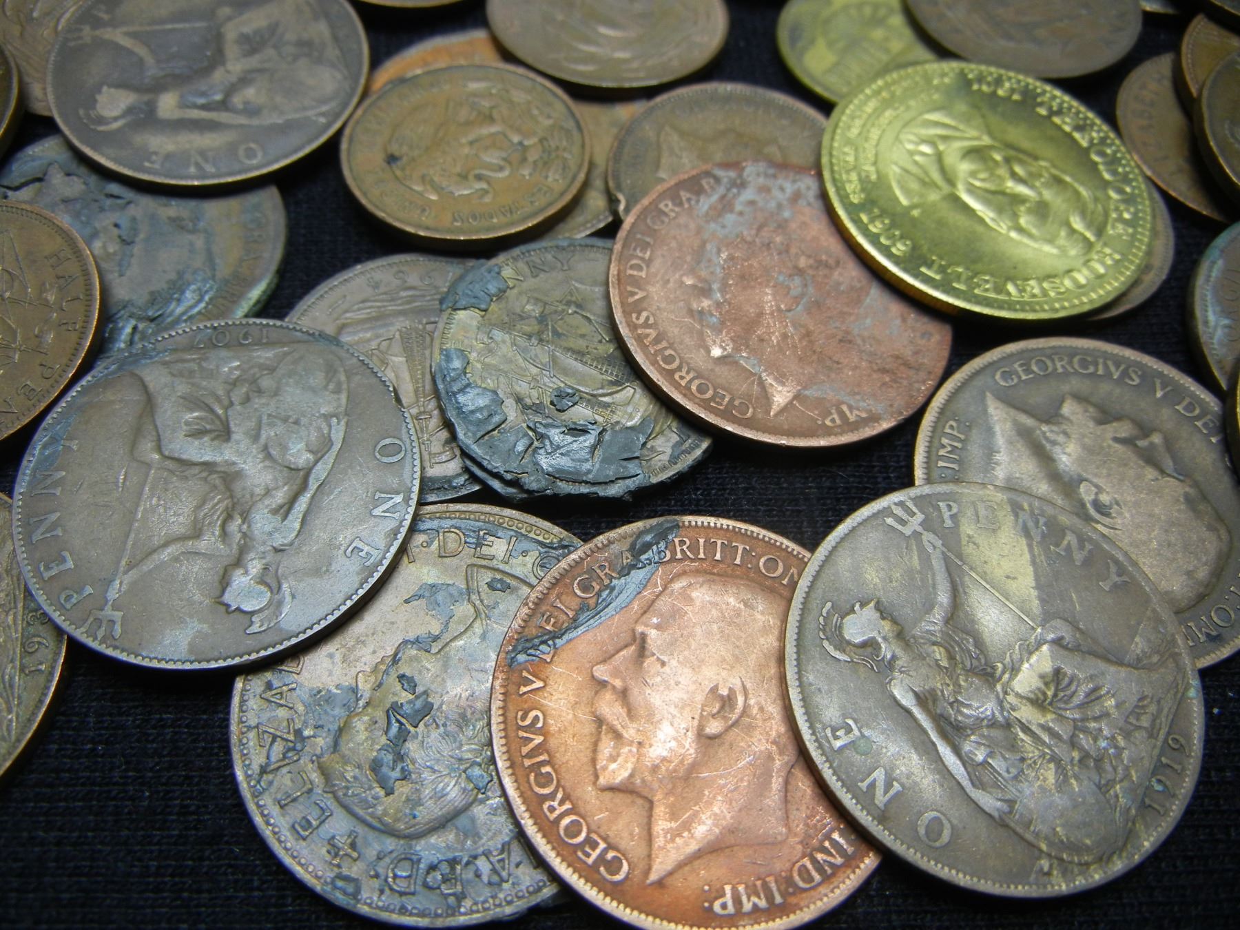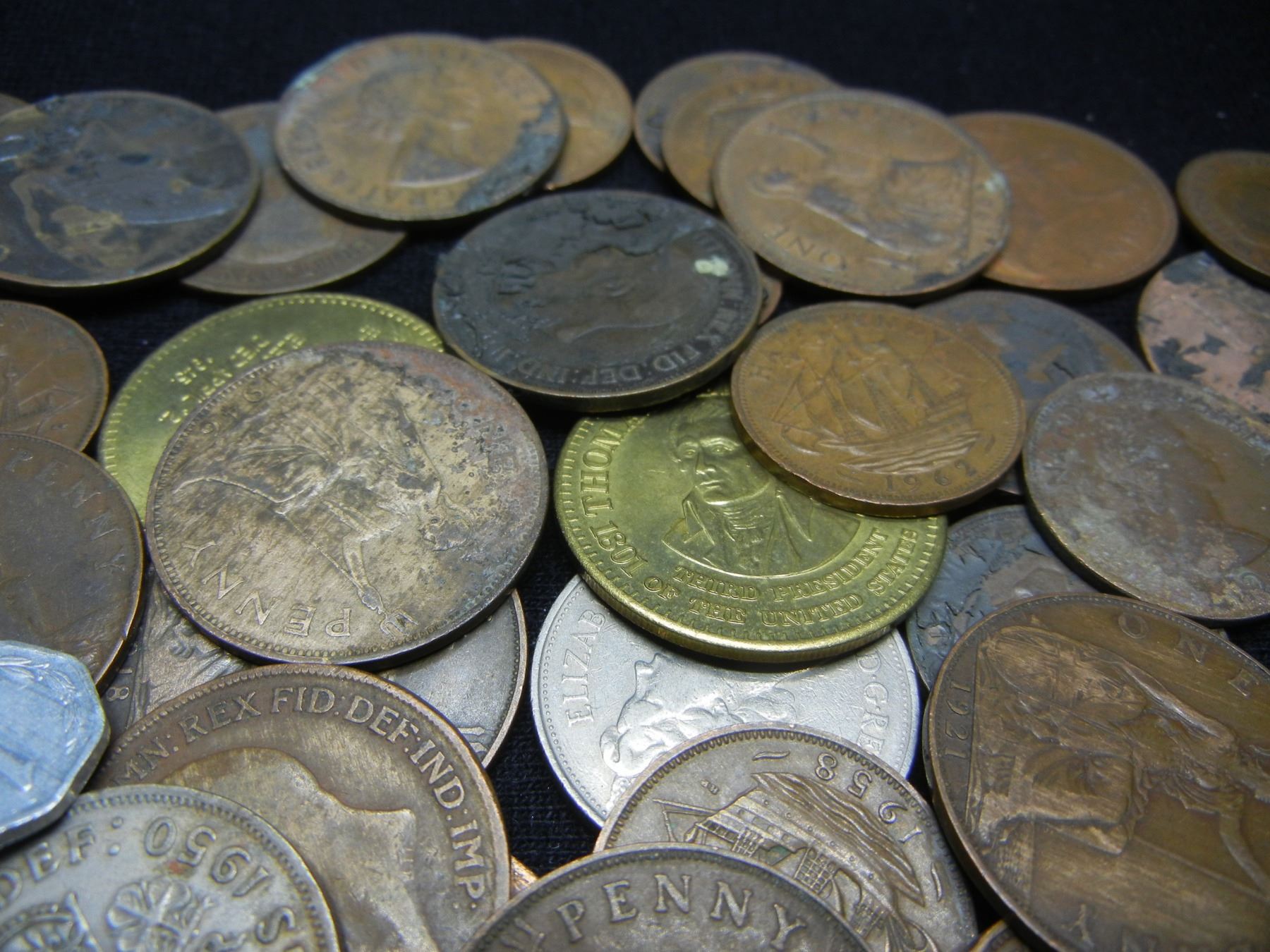 Mixed Group of Mostly Copper Foreign Coins. Weighs 2.1 Pounds.