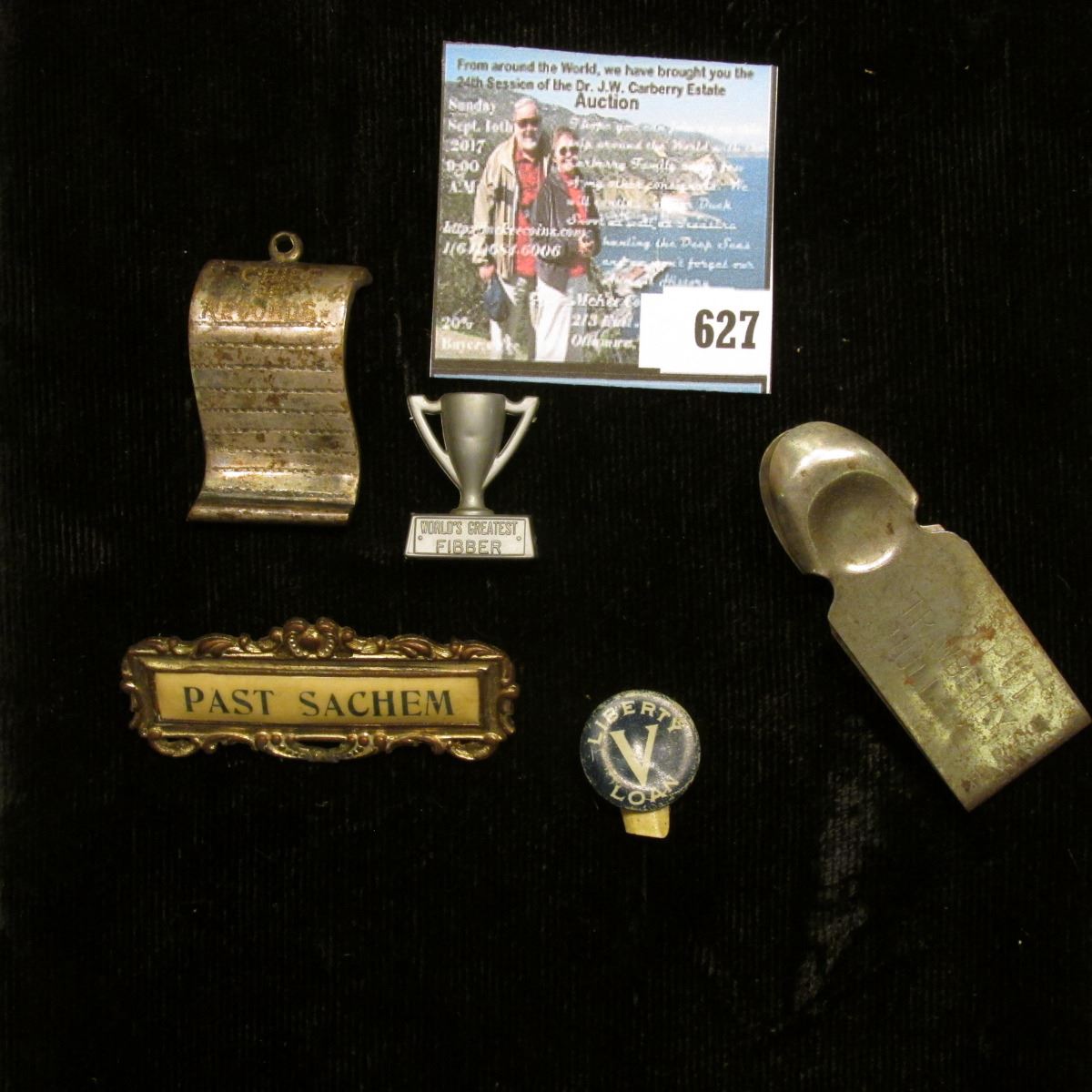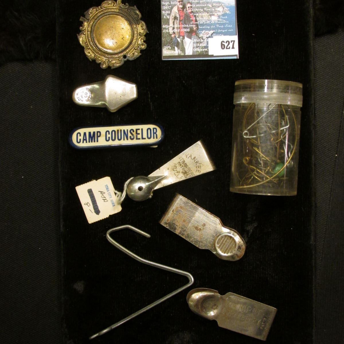 Mixed Group of Pin-back parts,"Past Sachem", "Chief of Records" Pendant; "Camp Counselor" Pin-back; & several antique Strawberry Hullers.