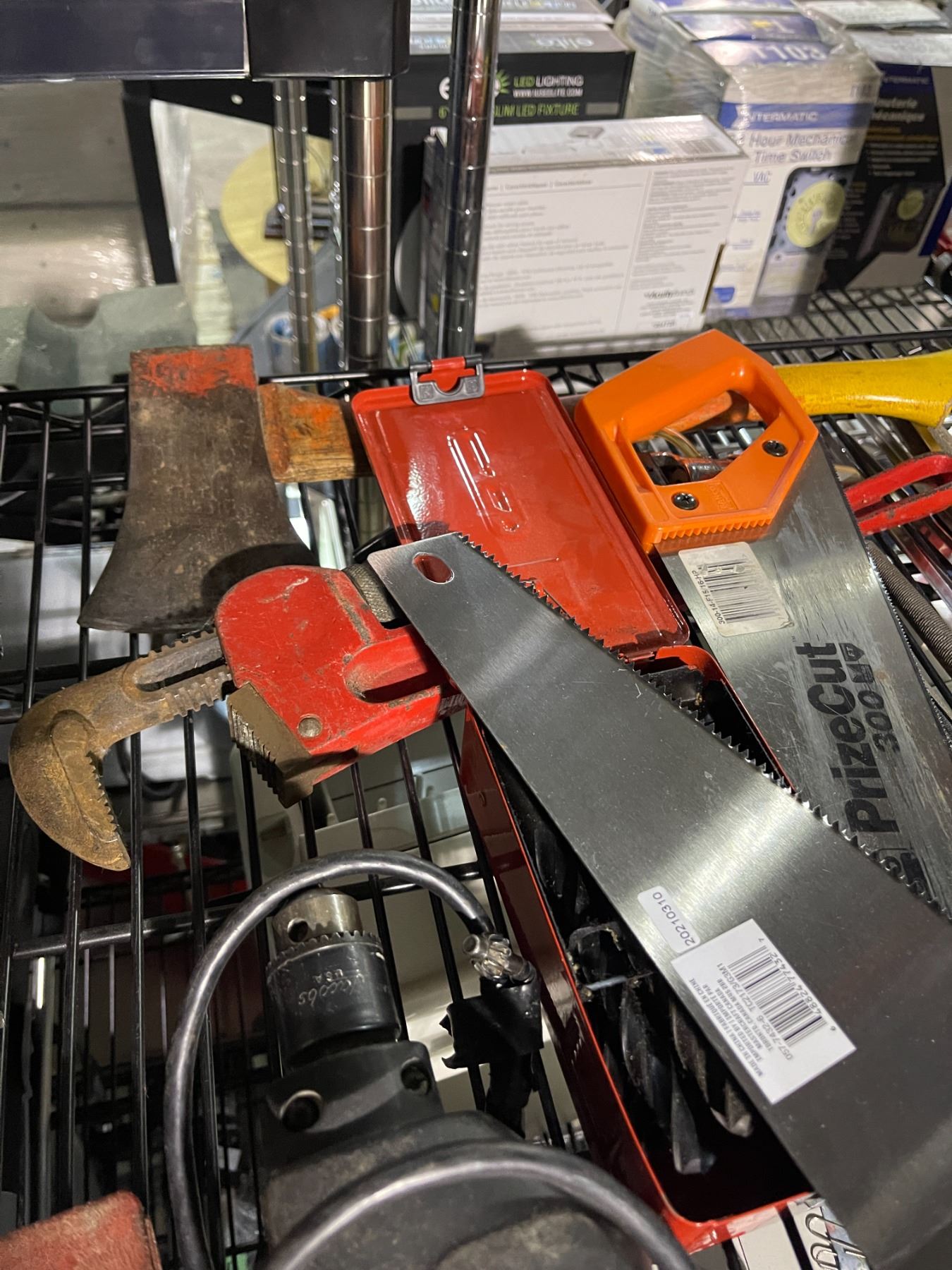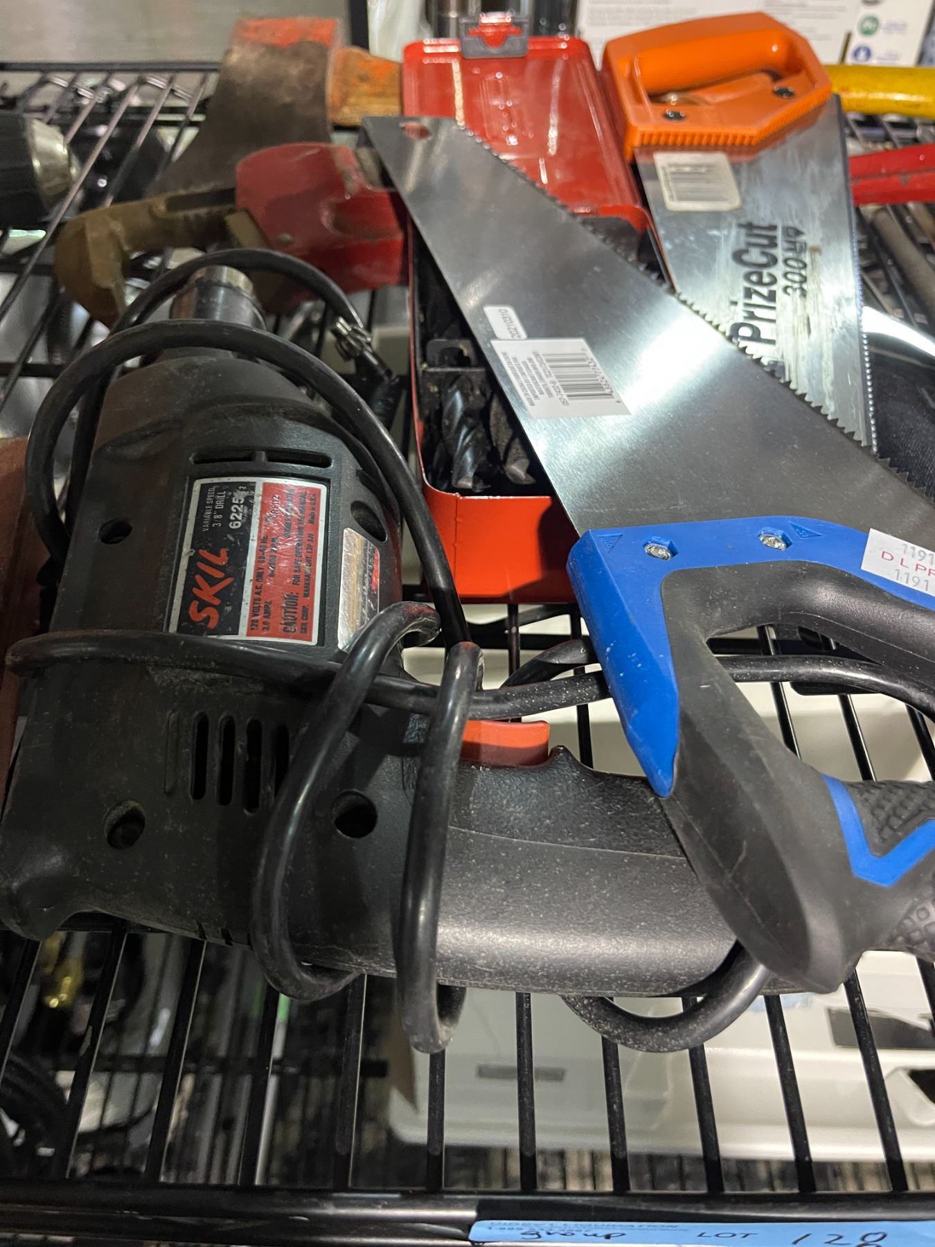 Mixed Hand & Power Tools: Skil Drill, Axes, Handsaws, Wood Files & Chisels