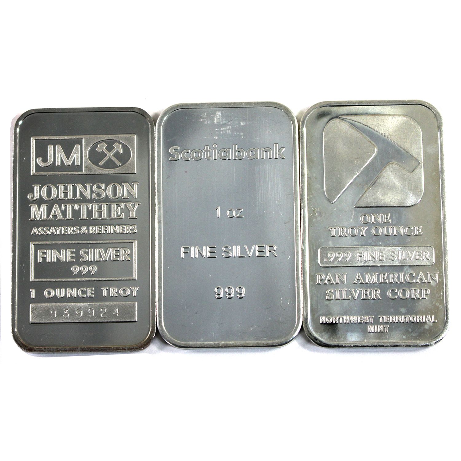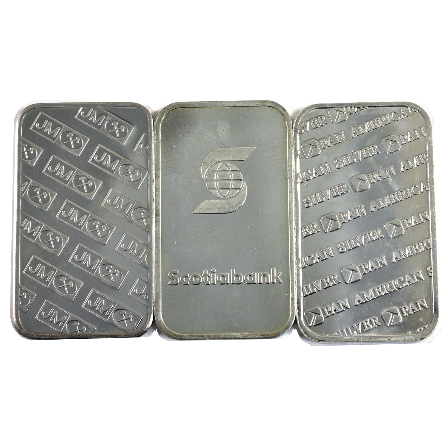 Mixed Lot of 1oz .999 Fine Silver Bars from JM, Scotiabank and Pan American Silver Corp. 3pcs. (Tax Exempt)