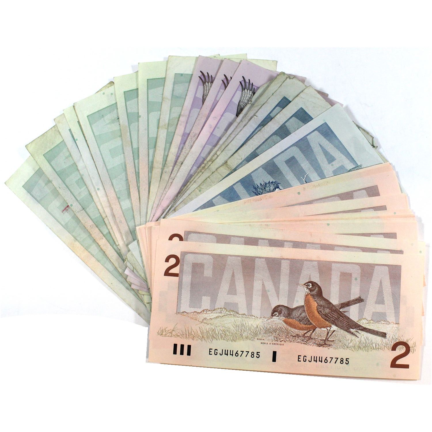 Mixed Lot of $2, $5, $10 & $20 Canada Bird Series Banknotes in Average Circulated or Better Condition. You will receive 23x $2, 9x $5, 3x $10 & 9x $20. 44pcs total
