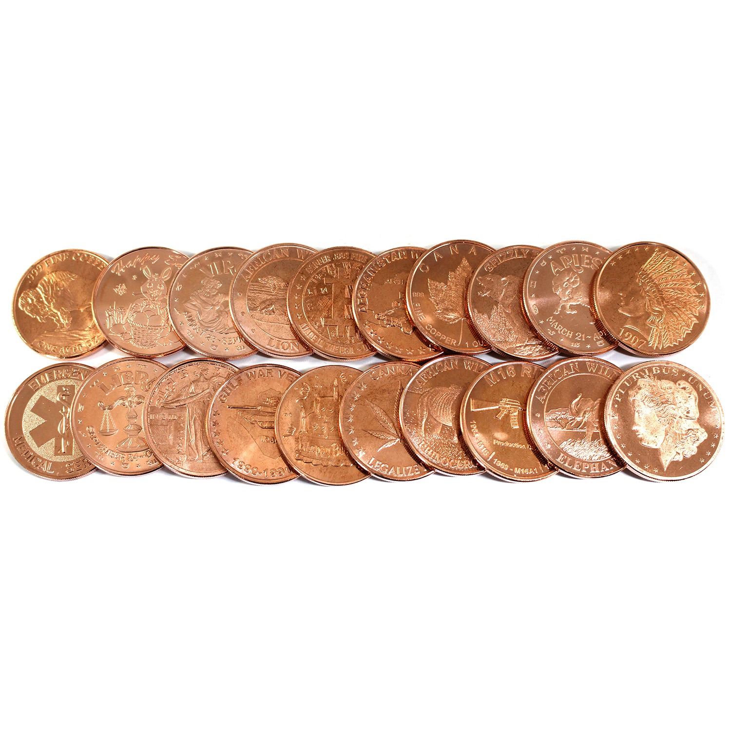 Mixed Lot of 20x 1oz Privately Minted .999 Fine Copper Rounds. Assorted Designs! 20pcs. (Tax Exempt)