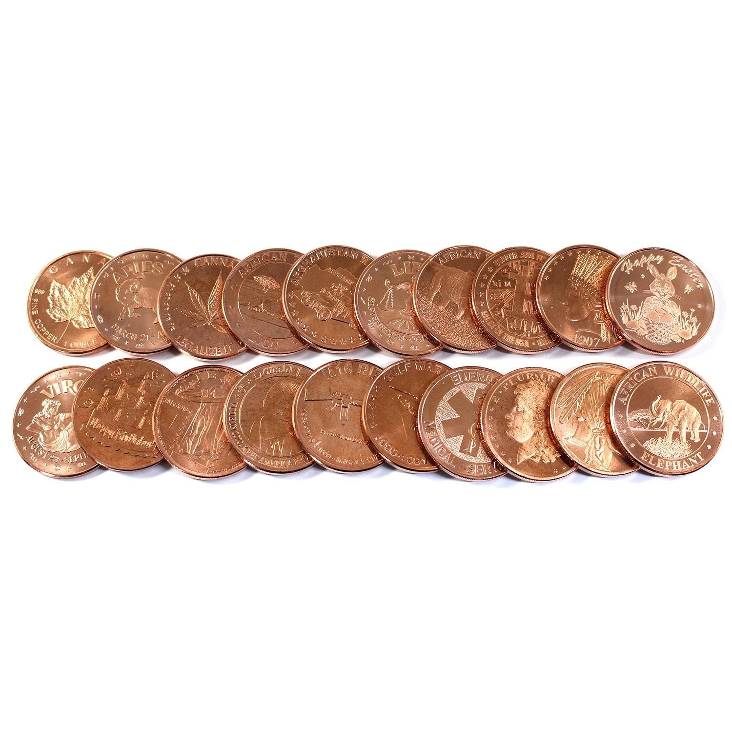Mixed Lot of 20x 1oz Privately Minted .999 Fine Copper Rounds. Assorted Designs! 20pcs. (Tax Exempt)