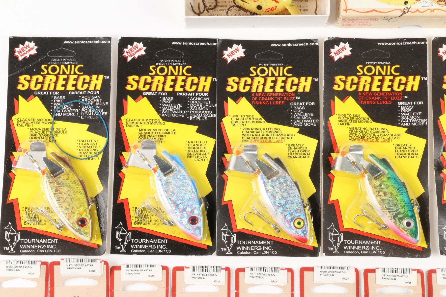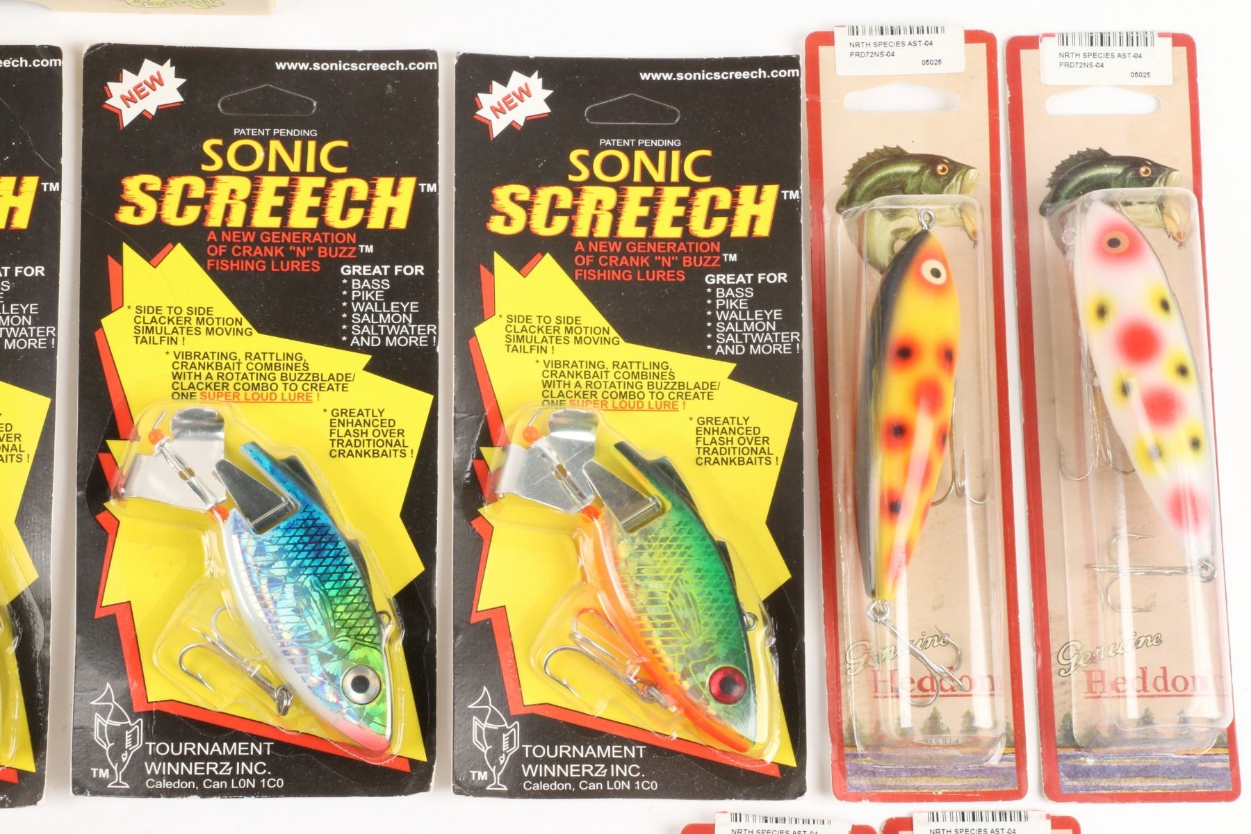 Heddon, Cotton Cordell, and Sonic Screech, North America. Packaged. Material: Mixed. Quantity: 22. Grade: VG+. 4" Each Est. $75-100.