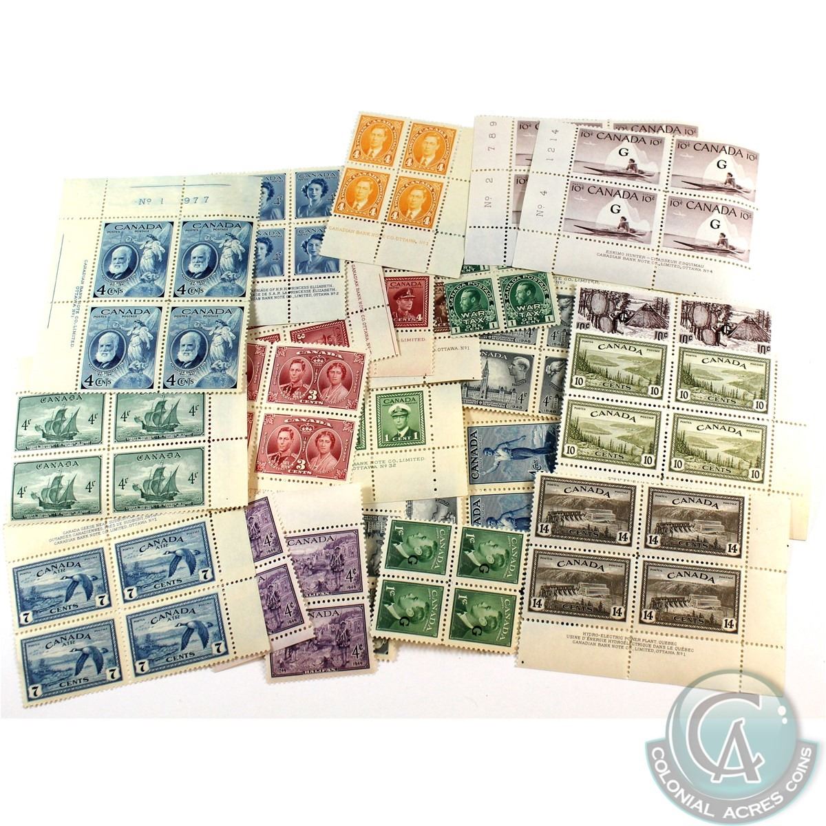 Mixed Lot of Canada Stamps from the 30's, 40's & 50's. Almost all the stamps are blocks and range from 1c to 20c FV. 88 stamps total.